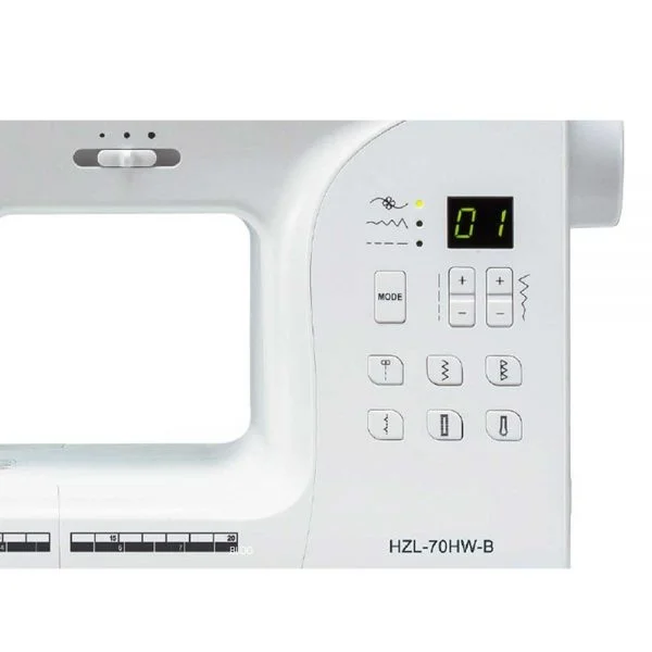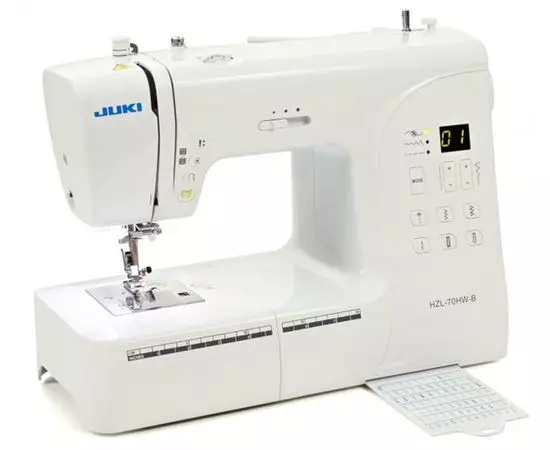 JUKI HZL-70HW-B оснащена 80 образцами строчек, 5 рисунками петель и множеством аксессуаров. Всего одним нажатием кнопки вы можете выбрать различные функции, включая точную остановку, положение остановки иглы и два автоматических закрепочных стежка.