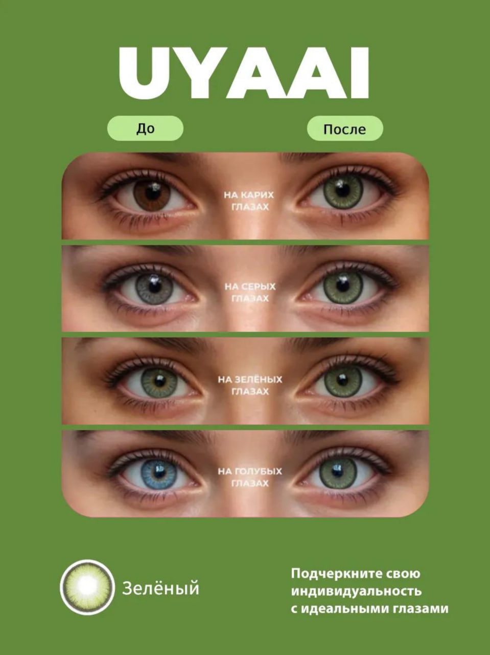 Светло-зелёные контактные линзы — это стильный способ изменить или подчеркнуть цвет глаз. Натуральный светло-зелёный оттенок придаёт взгляду свежесть, выразительность и уникальность. Линзы изготовлены из мягкого, дышащего материала, обеспечивают комфорт на протяжении всего дня и подходят как для светлых, так и для тёмных глаз. Отлично подойдут для повседневного ношения, фотосессий и особых случаев.
