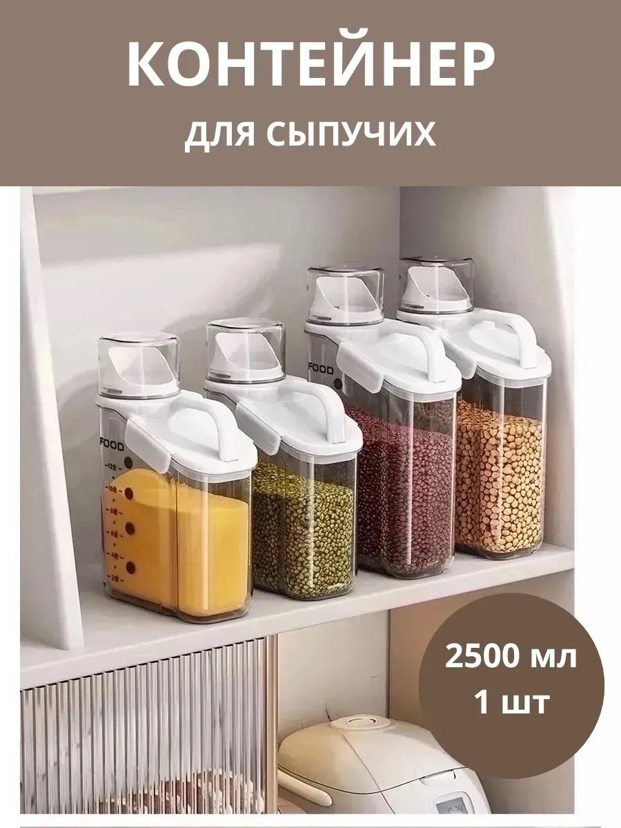 Контейнер для сыпучих продуктов объемом 2500 мл станет незаменимым помощником на вашей кухне. Его прямоугольная форма и вместительный объем позволяют хранить крупы, макароны, сахар, муку и другие сыпучие продукты в оптимальных условиях.