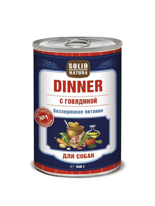 Говядина 50%, субпродукты из говядины: печень 20%, рубец 10%, сердце 10%, желирующая добавка, растительное масло, соль, вода.