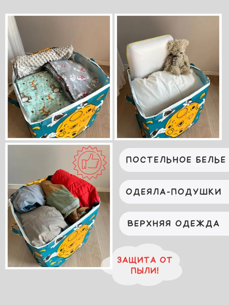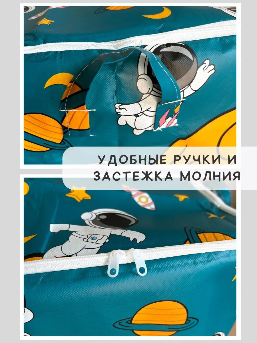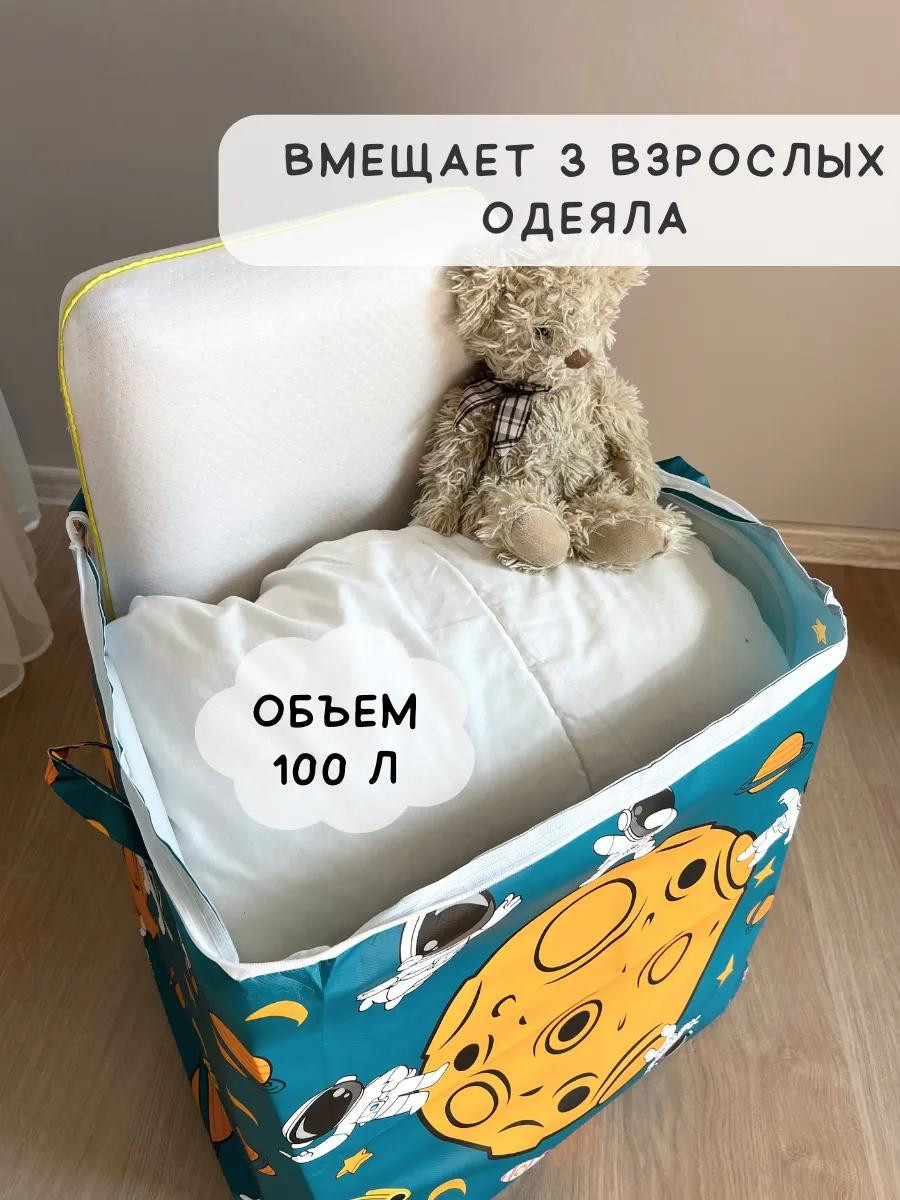 Просторный и яркий короб объёмом 100 литров — идеальное решение для хранения постельного белья, одеял, подушек и верхней одежды. Выполнен из плотного материала с защитой от пыли и удобной застёжкой-молнией. Дизайн с космическими мотивами украсит детскую комнату и добавит уюта.
