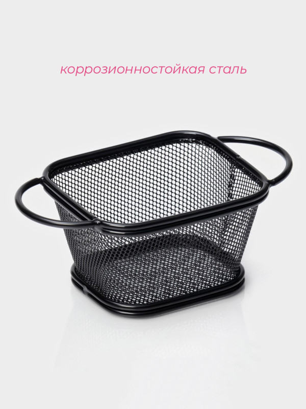 Минималистичная и стильная корзинка «Пулита» от бренда Доляна предназначена для эффектной подачи картофеля фри, наггетсов, луковых колец и других закусок. Изготовлена из коррозионностойкой стали с порошковым покрытием, что делает её устойчивой к влаге и долговечной в использовании. В комплект входит небольшой соусник, который удобно размещается внутри или рядом с корзинкой.