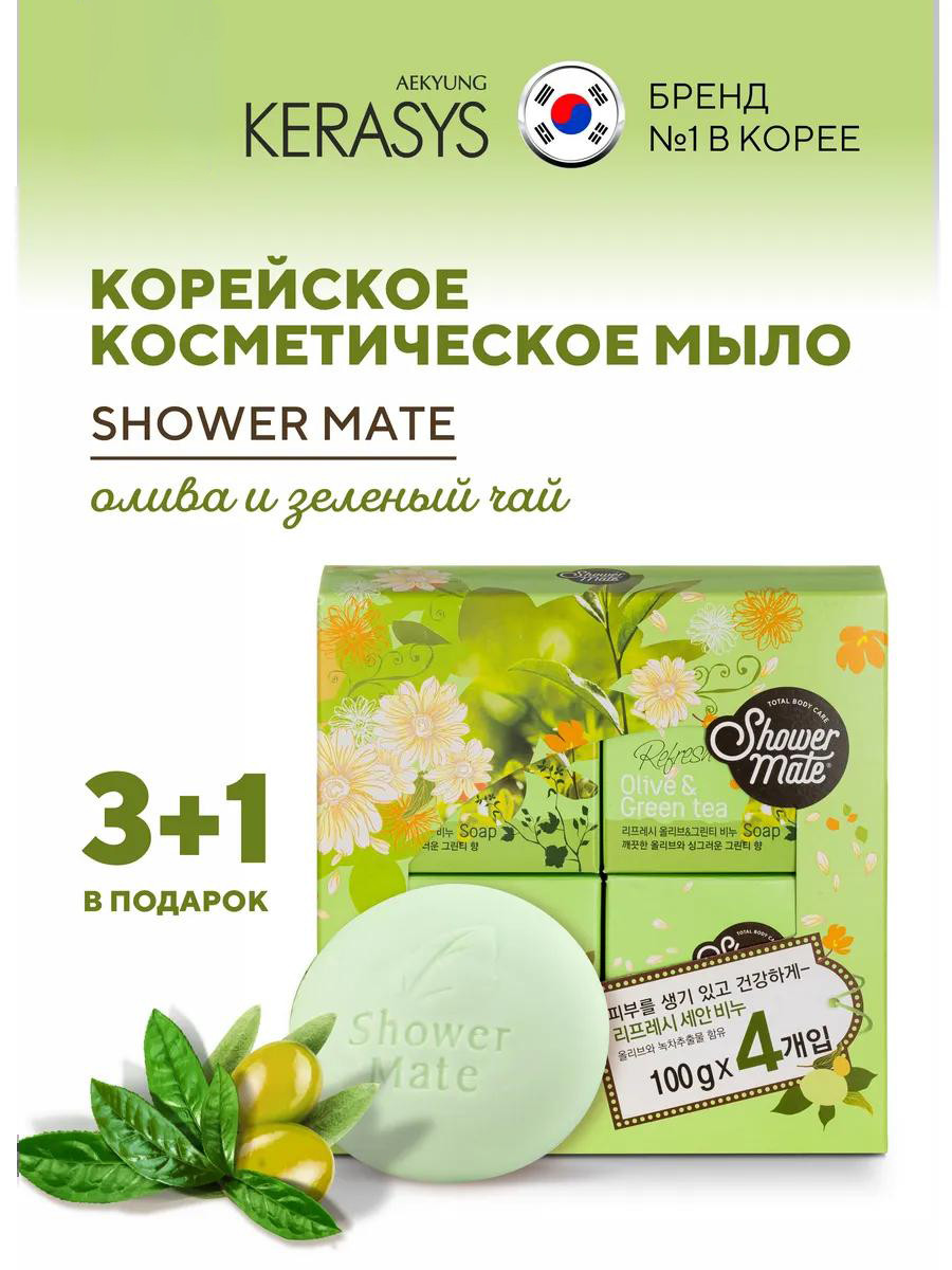 KERASYS Shower Mate Керасис Шауэр Мейт мыло туалетное твердое Шауэр Мэйт ОЛИВА и ЗЕЛЕНЫЙ ЧАЙ набор 4 шт. х 100г. Выгодная покупка по акции 4 штуки по цене 3 + 1 мыло в подарок. Экстракт оливы увлажняет и успокаивает кожу, экстракт зеленого чая тонизирует, способствует омоложению кожи и делает её гладкой и эластичной. Роскошный свежий аромат создаст подарит бодрость и ощущение наполненности энергией прямо с утра. Мыло туалетное косметическое кусковое для рук, лица и тела парфюмированное . Твердое кусковое корейское мыло для всей семьи подходит для всех типов кожи, но особенно хорошо подходит сухому типу кожи. Нежная пена бережно очищает кожу от загрязнений и отмерших клеток. Не вызывает раздражения, не повреждает защитный барьер, не сушит кожу, оставляя ее гладкой и бархатистой Kerasys мыло туалетное твердое корея Корейское мыло Экстракт оливы, в составе косметического мыла Shower Mate Olive and Green Tea Soap, увлажняет и успокаивает кожу. МЫЛО не сушит кожу, а УВЛАЖНЯЕТ! • Богатый полезными веществами, экстракт оливы увлажняет и создает защитный слой для кожи; • Катехины зеленого чая предотвращают преждевременное старение кожи, способствуют ее омоложению; Мыло легко смывается водой и оставляет приятный шлейф свежести на вашем теле, а также ощущение блаженства как после ароматерапии. Мыло поставляется в красивой упаковке, которая станет прекрасным подарком для ваших близких. Приобретая мыло Shower Mate ОЛИВА И ЗЕЛЕНЫЙ ЧАЙ, вы получаете уникальную возможность позаботиться о своей коже и насладиться приятным свежим ароматом, который подарит вам ощущение комфорта и блаженства. РЕЗУЛЬТАТ •Тело чистое до скрипа •Кожа шелковистая и увлажненная •Легкий свежий аромат наполнит день бодростью Подходит для всех типов кожи, в том числе для увядающей, жирной, подростковой и очень сухой. Товар сертифицирован. Корейская уходовая косметика это всегда отличное качество и роскошный аромат