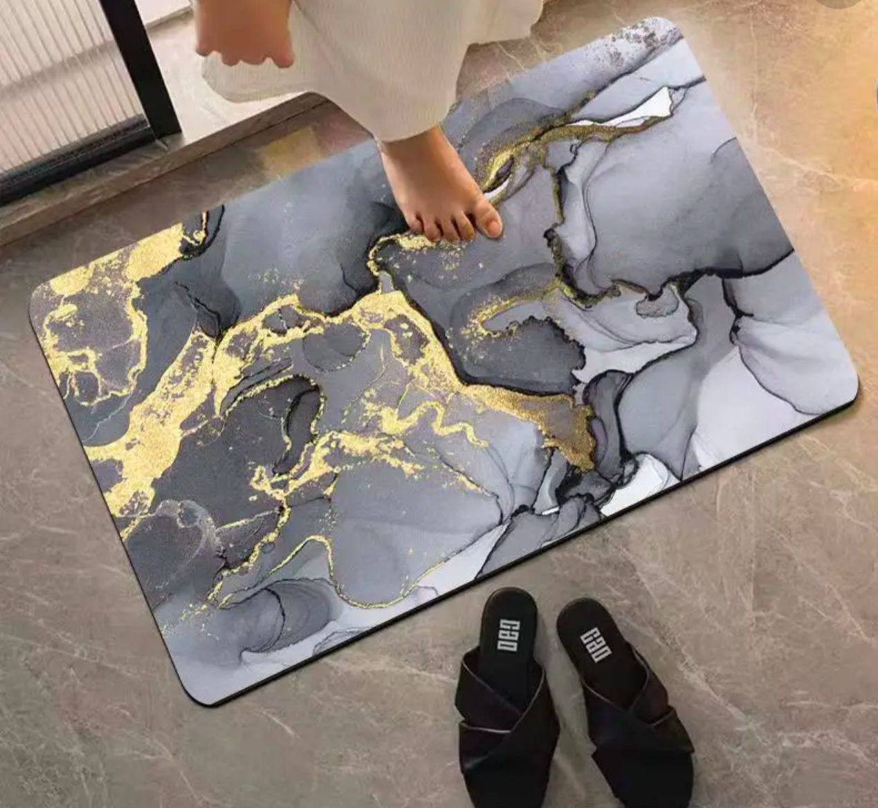 Описание товара: Элегантный коврик для пола с рисунком мрамора и золотыми акцентами идеально подходит для ванной и кухни. Этот стильный коврик не только добавляет роскоши в интерьер, но и служит практичным решением для защиты пола от воды и грязи. Изготовленный из высококачественного материала, он устойчив к влаге и легко очищается.