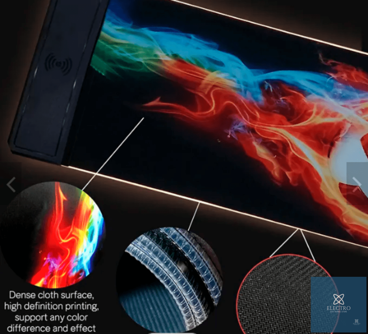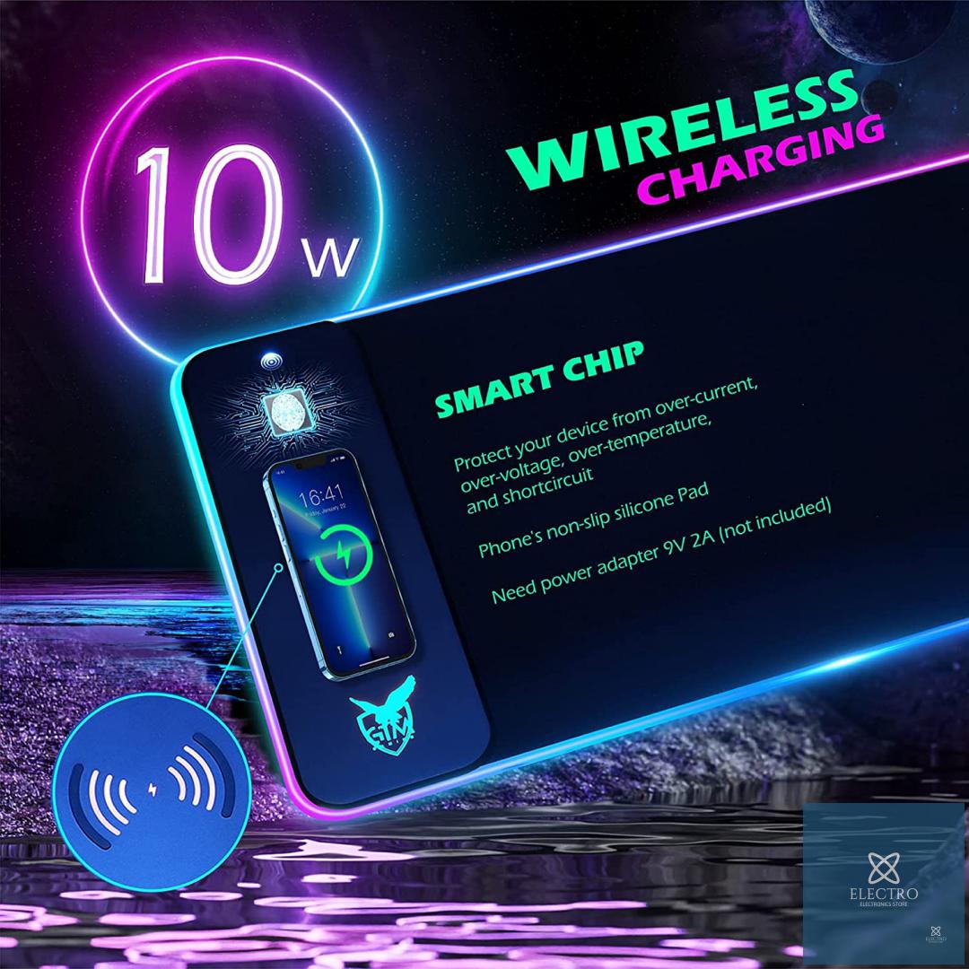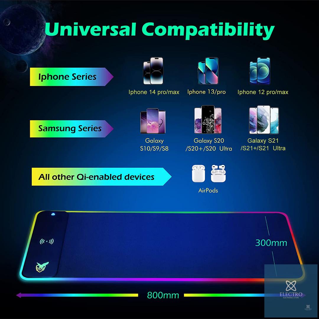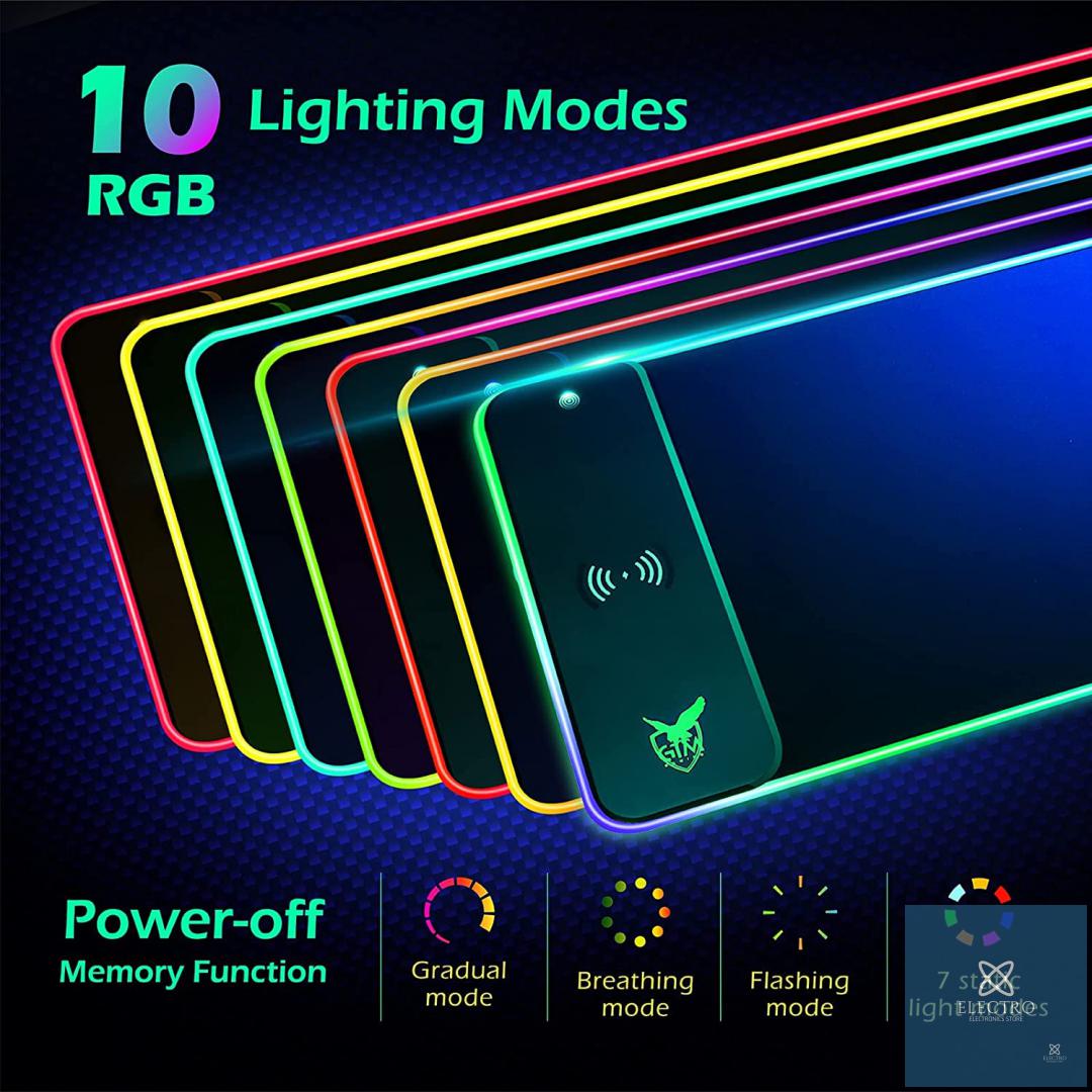 Встроенная быстрая беспроводная зарядка 10 Вт, совместимая со смартфонами, поддерживающими беспроводную зарядку, такими как iPhone 8/X/XR/XS/11/11 Pro, Samsung Galaxy 10/S9/S8 Plus, Galaxy Note 9 /8 и все другие устройства с поддержкой Qi. 3 индикатора режима зарядки - КРАСНЫЙ для зарядки, ЗЕЛЕНЫЙ для полной зарядки, СИНИЙ для режима ожидания. (ПРИМЕЧАНИЕ: 10 Вт требуется адаптер питания 9 В 2 А, но адаптер питания не входит в комплект этого коврика для мыши)