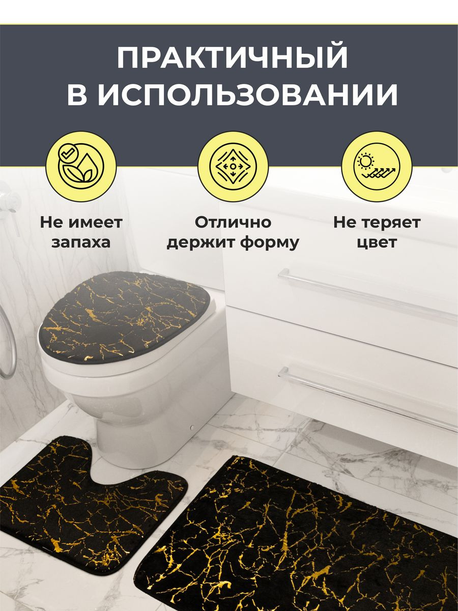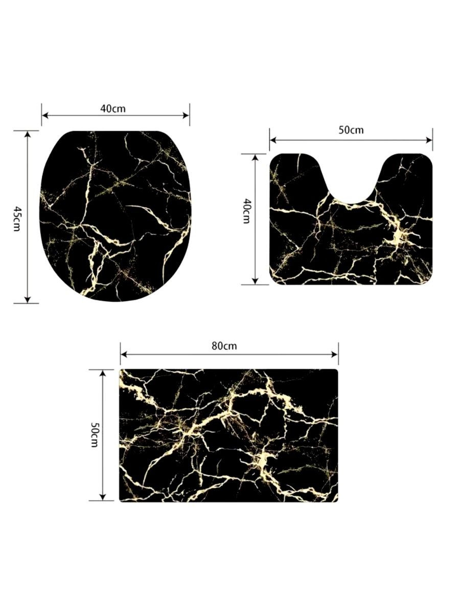 Коврики для ванной комнаты и туалета комплект белый мрамор - это идеальный вариант для создания домашнего уюта и комфорта в вашем доме. В наборе три коврика: в ванную прямоугольной формы, в туалет с вырезом под унитаз и на сидушку унитаза : 50*80 см (прямоугольник) + 50*40 см (u-образная форма) + 38*42 см (o-образная форма). Коврик для ванной легко мыть, набор надежно прилегают к полу, впитывает влагу. Коврик в ванную комнату быстро сохнет, не линяет и не меняет форму. Приятный дизайн, мягкий на ощупь, эластичный и удобный для ног. Впитывающий коврик имеет долгий срок службы так как произведен из качественных материалов, края обработаны. Универсальные коврики имеют стильный дизайн и красивые узоры в виде мрамора. Приобретайте коврики , пусть красота и уют прийдут в ваш дом!