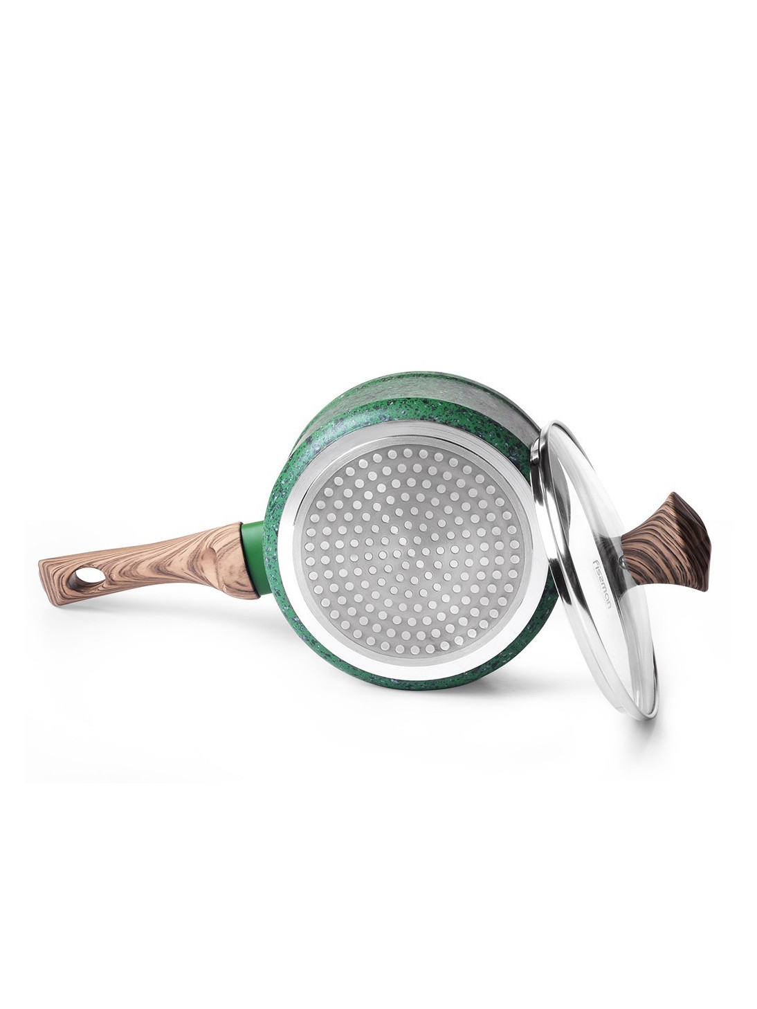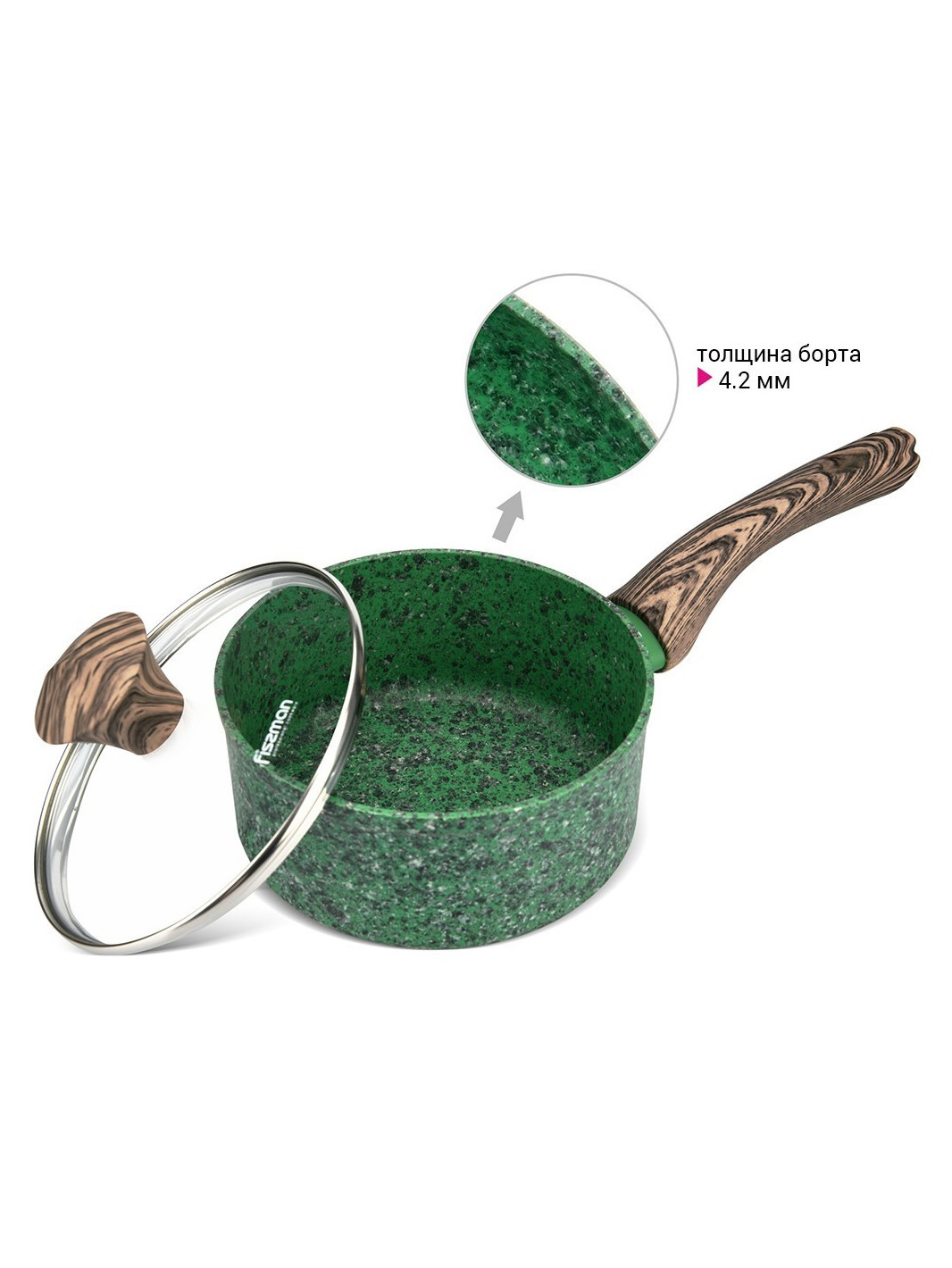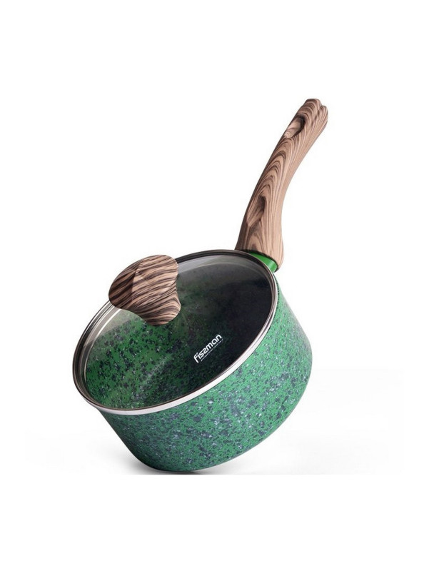 Новая серия посуды Malachite от компании FISSMAN изготовлена из литого алюминия с многослойным антипригарным покрытием EcoStone, которое усилено вкраплением каменных частиц. Главное преимущество покрытия - это устойчивость к царапинам и износу. Также покрытие безопасно для здоровья человека и окружающей среды. Утолщенное дно сковороды рационально распределяет тепло, что позволяет продуктам готовиться быстро и равномерно. Приятная на ощупь ручка из бакелита не нагревается и не скользит в руках. Посуда серии Malachite - это уникальный дизайн и не превзойденное качество.