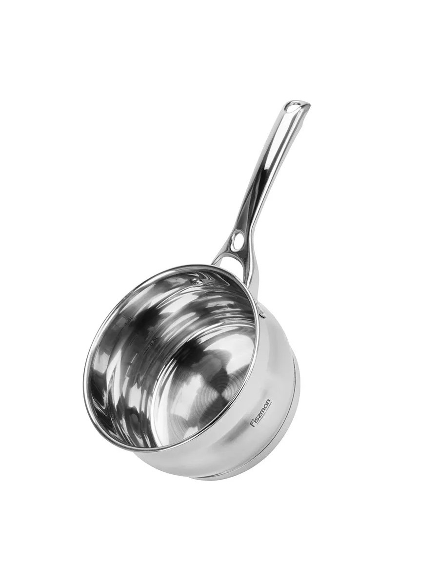 Ковш Fissman объёмом 1,9 л изготовлен из пищевой нержавеющей стали 18/10. Трёхслойное дно с алюминиевым сердечником обеспечивает быстрый и равномерный нагрев без «горячих» точек. Длинная эргономичная ручка остаётся прохладной и удобно ложится в руку. Крышка из закалённого стекла позволяет контролировать процесс приготовления, не теряя тепла и влаги.