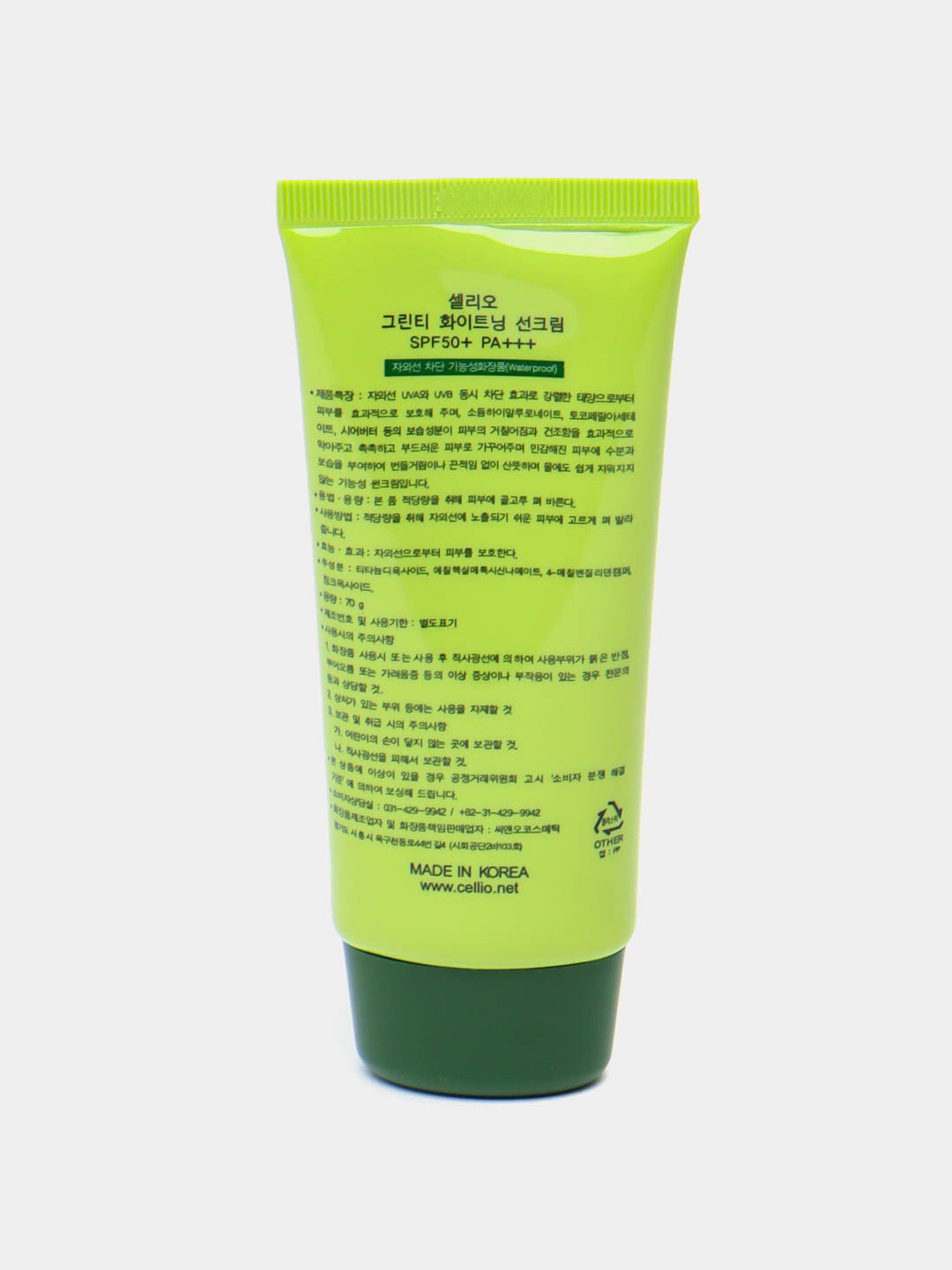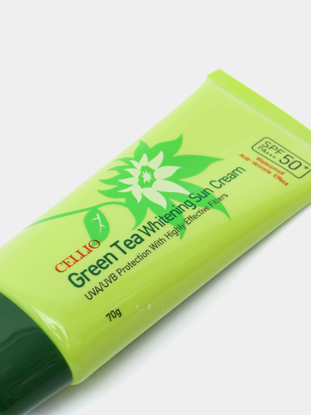 Солнцезащитный крем с экстрактом зелёного чая Cellio Green Tea Whitening Sun Cream SPF 50+ PA+++ 70 г