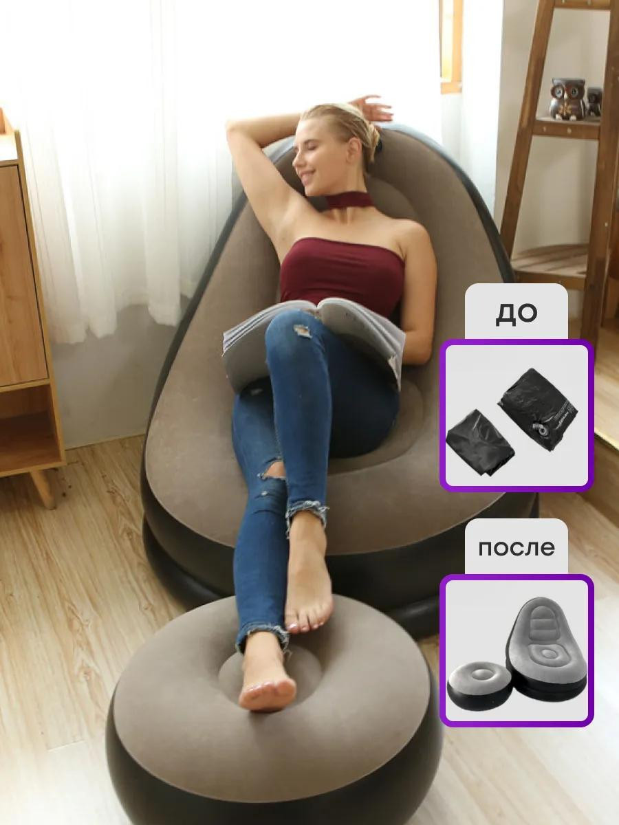Кресло надувное с пуфом - это идеальный выбор для комфортного отдыха. Удобное легко надуваемое сиденье с пуфиком изготовлено из качественного ПВХ материала, обеспечивает прочность, выдерживает вес человека до 120 кг. Легко и быстро надуывется без особых хлопот. Автоматический насос в подарок