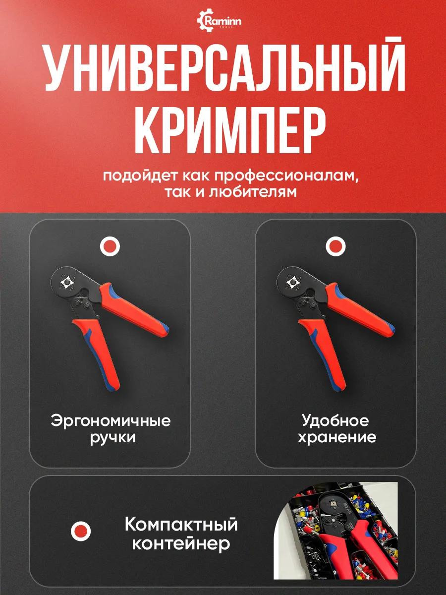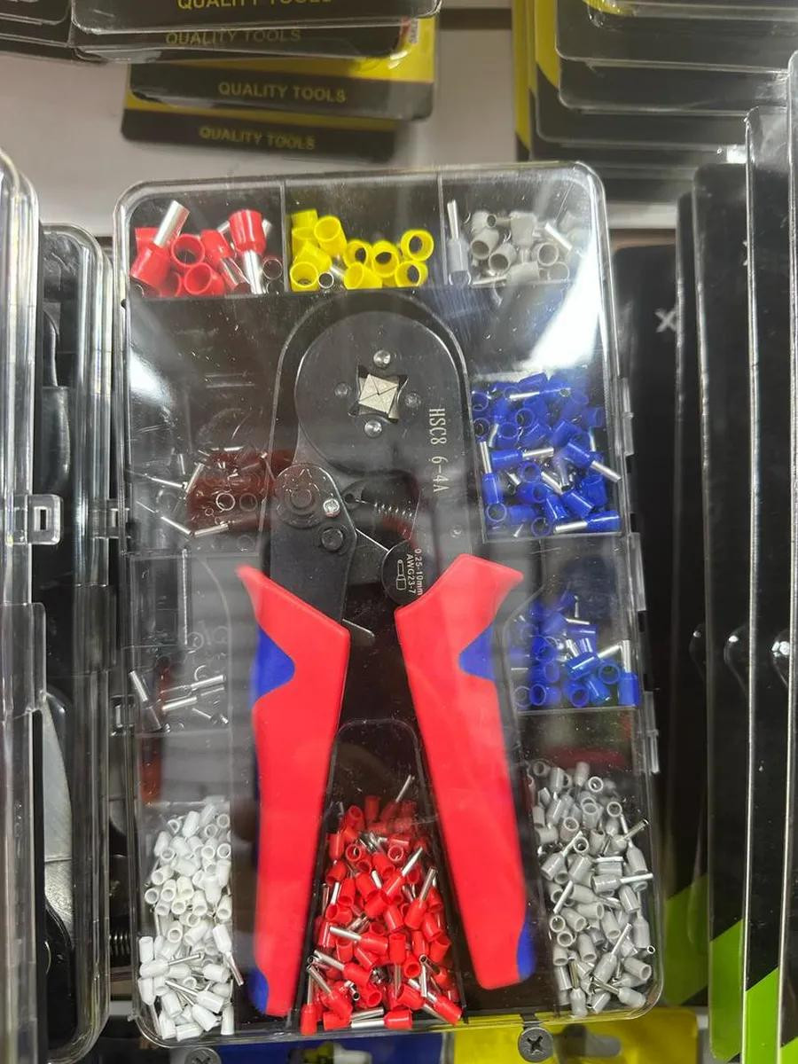 Набор содержит наиболее популярные размеры одинарных втулочных наконечников с универсальным инструментом для опрессовки втулочных наконечников.Пресс-клещи для обжимки наконечников. Создавая равномерное давление обеспечивают лучшую зону контакта. Прочные и простые в использовании.В комплект входят щипцы для обжима проводов и набор из 1900 клемм.Изготовлен из высокопрочной стали, имеет высокую твердость, длительный срок службы и обеспечивает более тонкий обжимной эффект. Требуемое усилие нажатия должно быть достигнуто до того, как тормозной блок автоматически освободит клещи. Имеет эргономичный дизайн ручки, противоскользящий и удобный.Область применения: кабельные наконечники.
