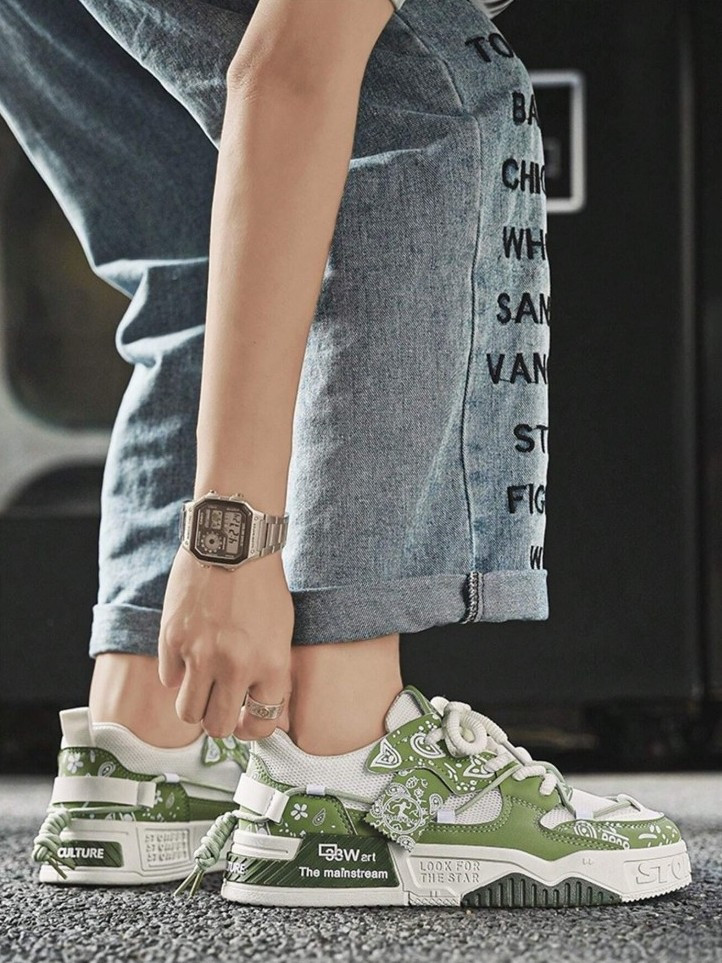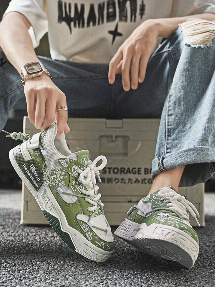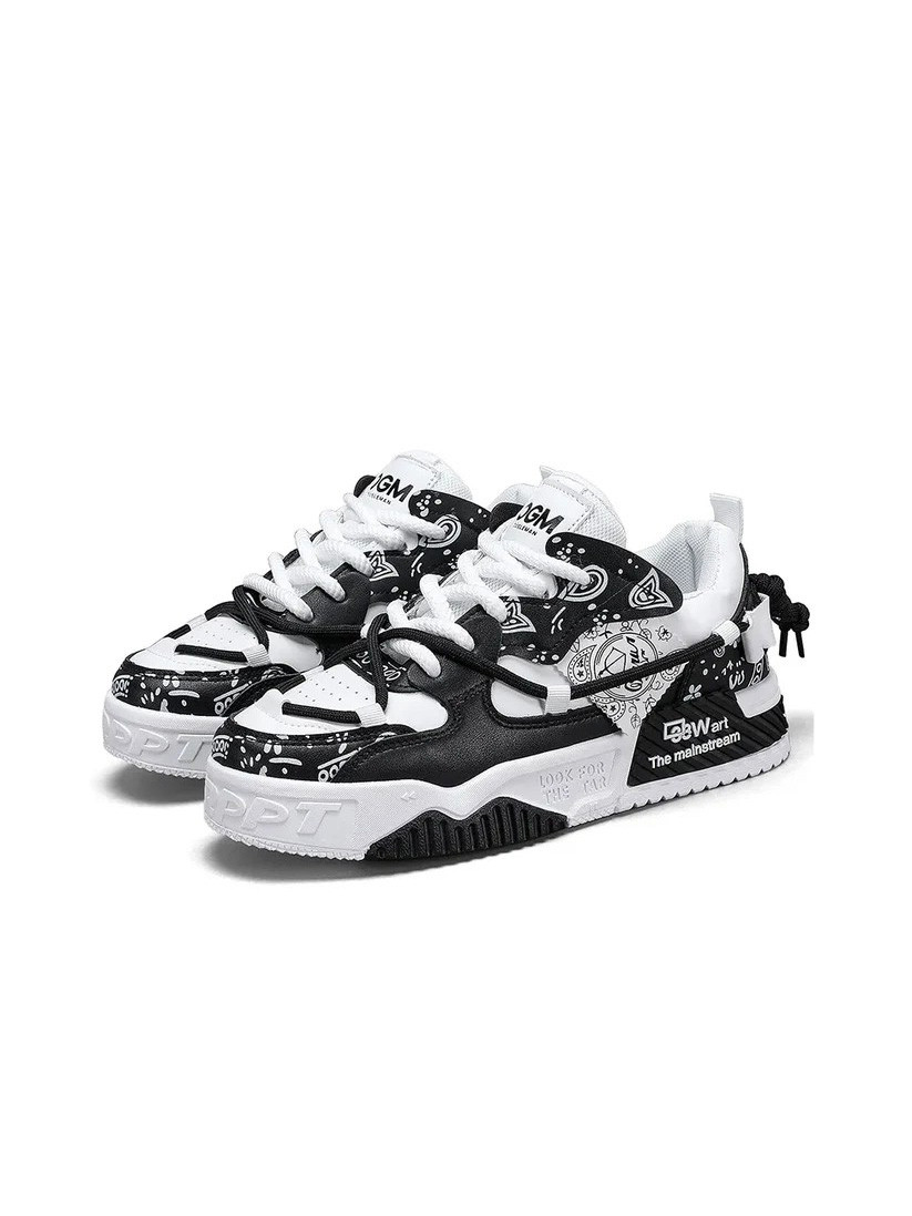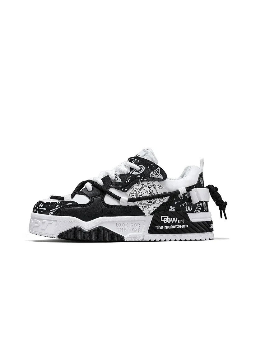 Эти стильные кеды "Бандана Стрит" созданы для тех, кто любит яркий уличный стиль и комфорт. Черно-белый дизайн с бандана-принтом придаёт обуви дерзкий и модный вид, а массивная подошва обеспечивает удобство и устойчивость в повседневной носке. Уникальные графические элементы и надписи делают эту модель отличным выбором для городских модников, стремящихся выделиться из толпы.