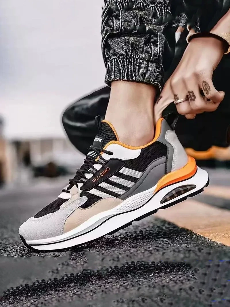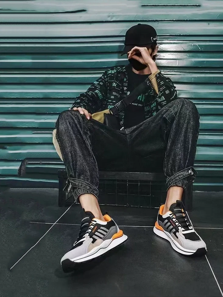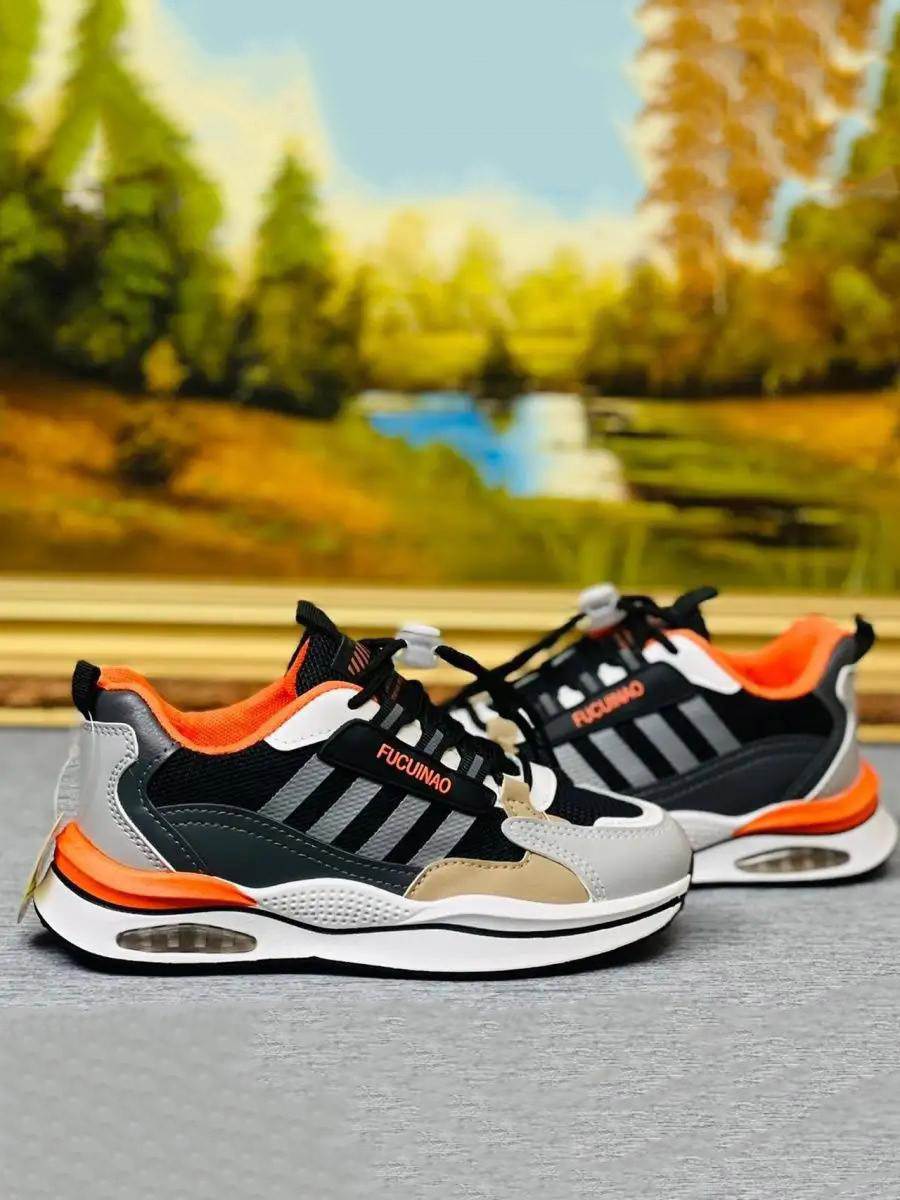 Стильные и удобные мужские кроссовки FUCUNIAO — идеальный выбор для повседневной носки и активного образа жизни. Современный дизайн в чёрно-серой гамме с яркими оранжевыми акцентами придаёт образу динамичность и энергию.