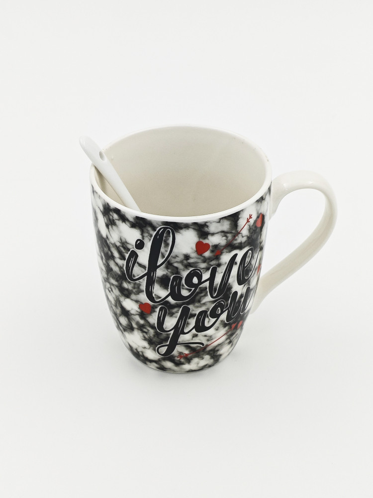 Особенности: стильный мраморный дизайн, романтичная надпись, в комплекте керамическая ложка.