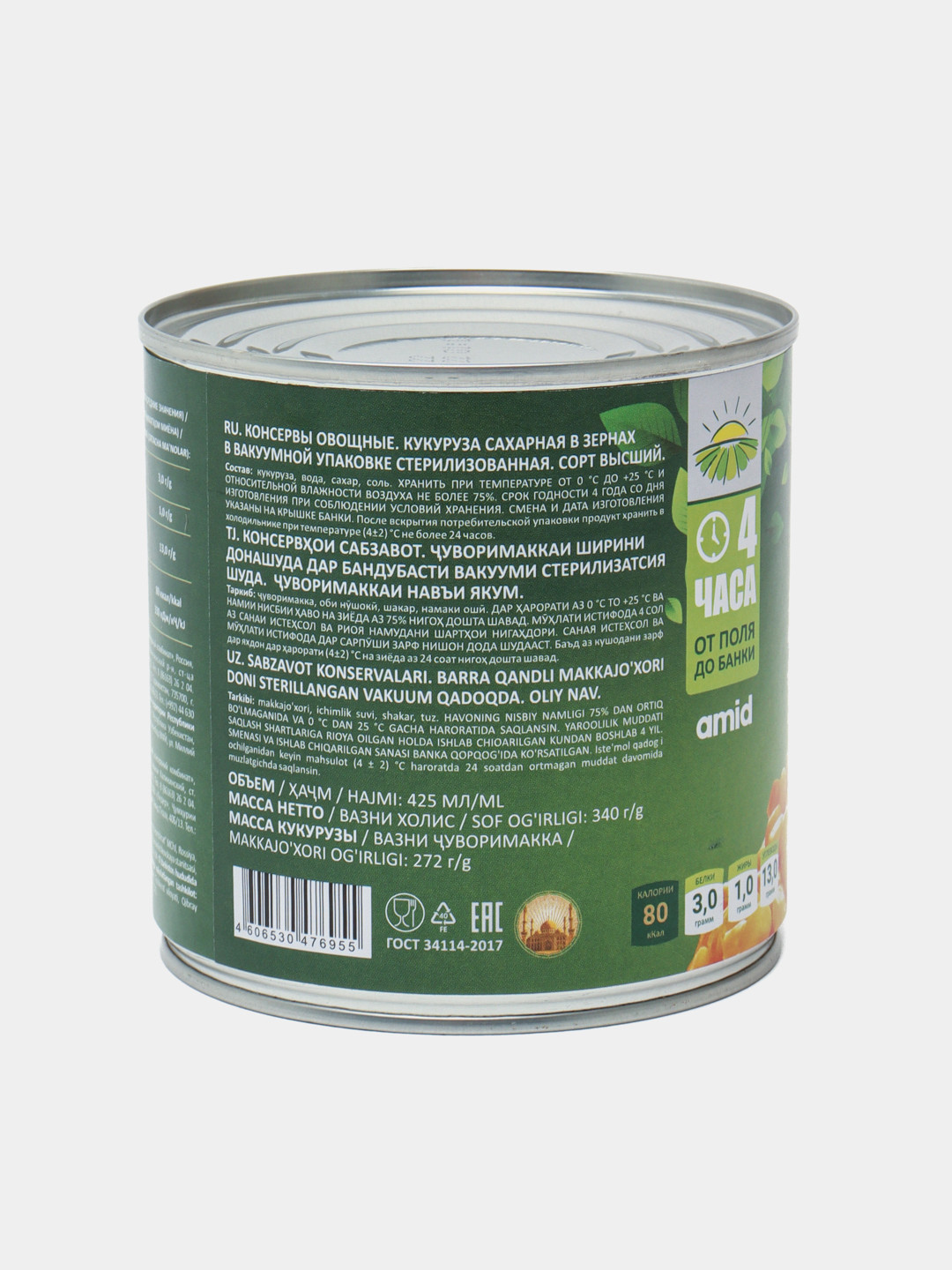 Описание товара: Стерилизованная сладкая кукуруза в зёрнах из отборных сортов, упакована в вакууме для сохранения вкуса и свежести. Подходит для приготовления салатов, гарниров и других блюд.