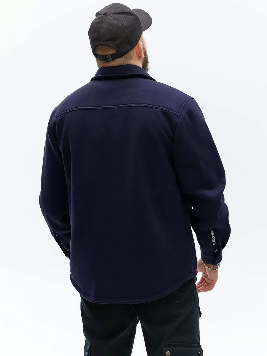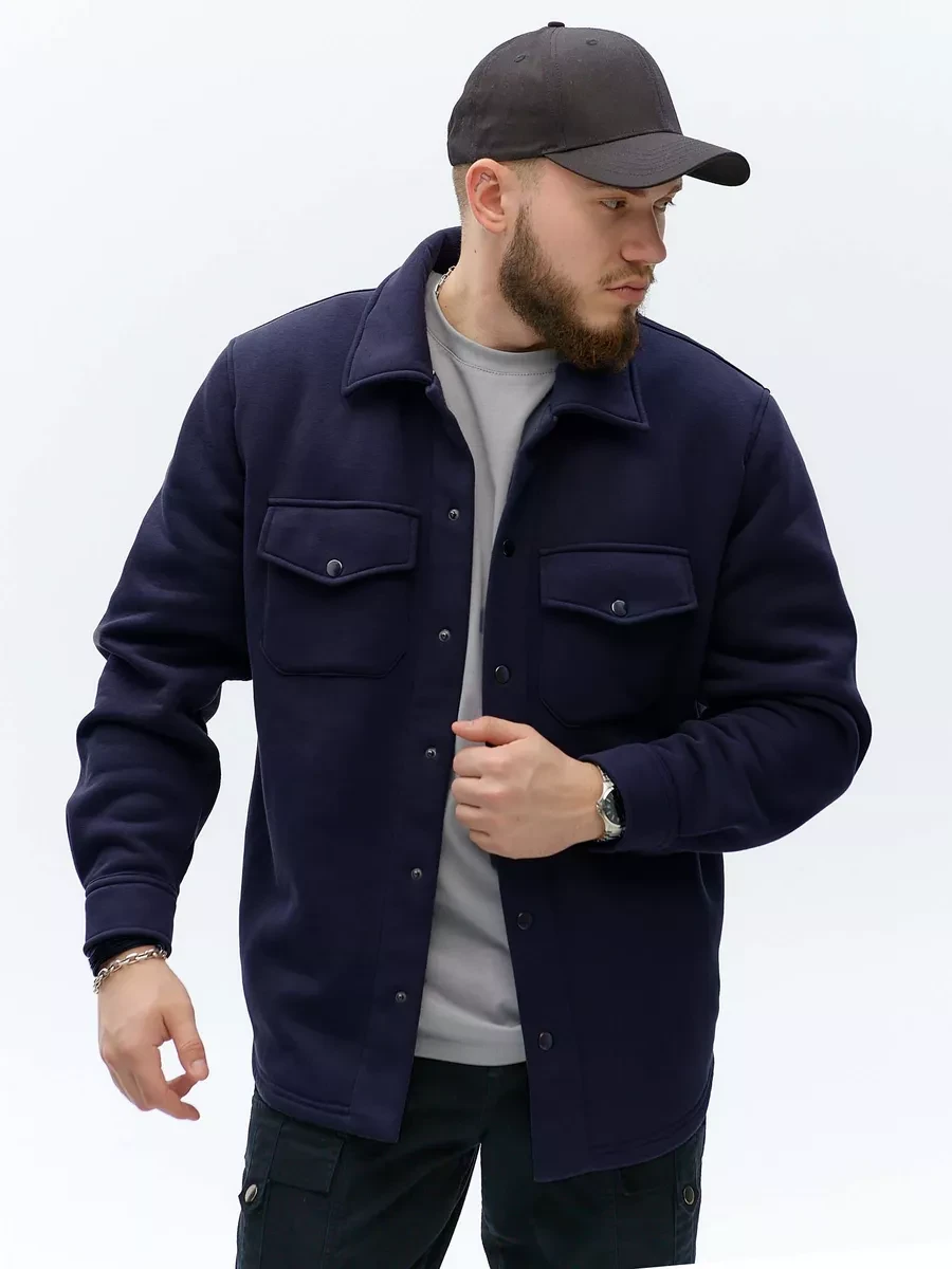 ? Мужская утеплённая куртка-рубашка Oversize (тёмно-синяя)