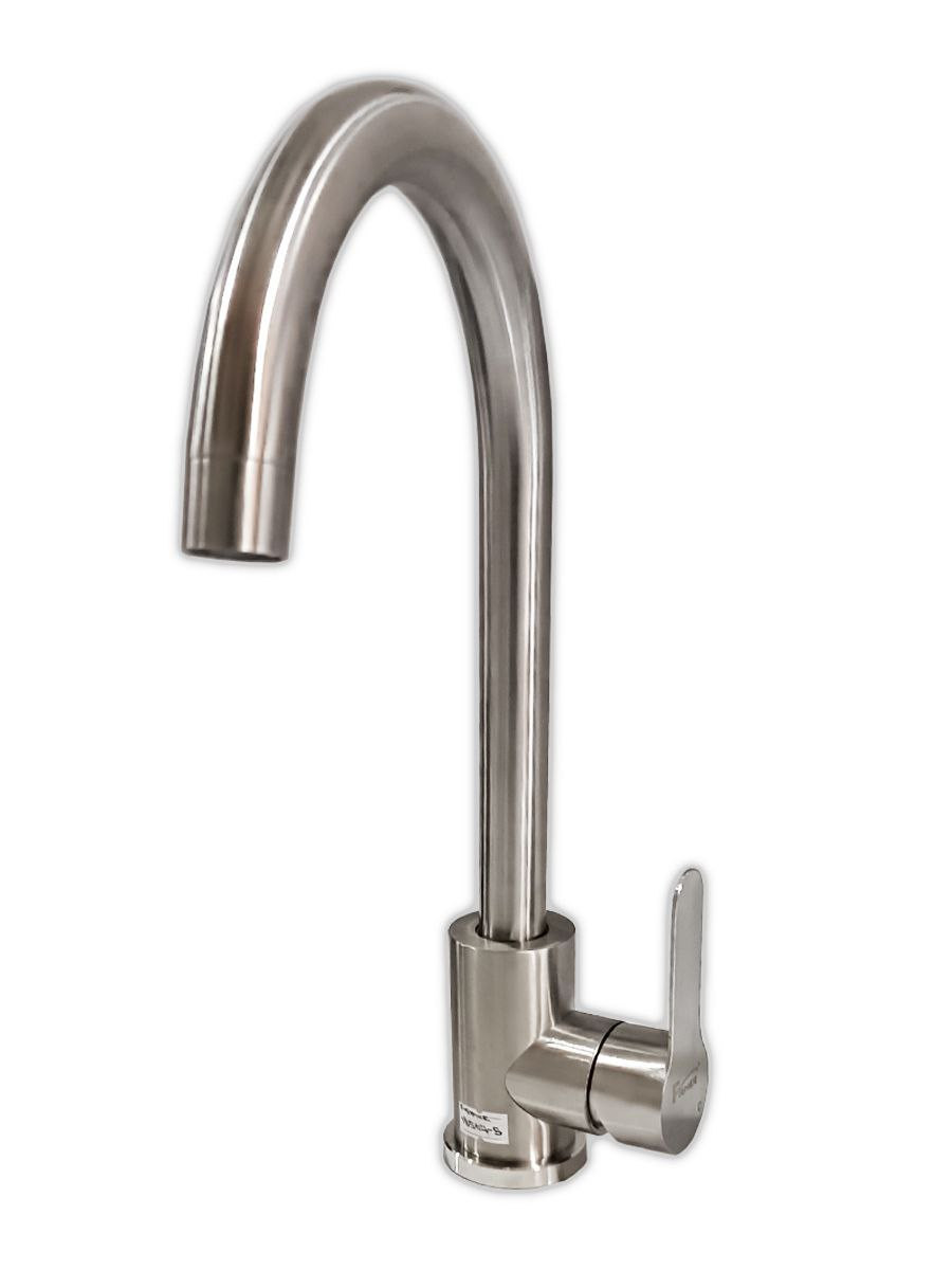 Этот стильный и функциональный кухонный смеситель станет отличным дополнением для вашей кухни. Он выполнен в современном минималистичном дизайне с изогнутым высоким изливом, что обеспечивает удобство при мытье посуды и наполнении высоких ёмкостей.