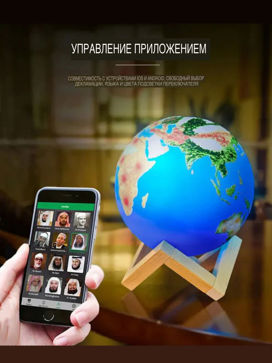 Светильник луна читающий Коран с переводом на 16 языков, в том числе татарский и русский, отличный способ наполнить дом теплом, уютом и святым звучанием Корана. Коран ночник читается 16 известными Арабскими чтецами. ПЕРЕВОДЫ: Русский,Фарси(Таджикский),Татарский язык, Узбекский, Турецкий, Английский и др. Управляется Лампа пультом или приложением Quran Speaker в смартфоне. Лампа также проигрывает: Тафсир Корана, Нашиды(мелодии), Сборники Хадисов Бухари и Муслима, Рукъя (Молитвы от сглаза, колдовства, болезней, порчи), Азан Молитвы из намаза, Молитвы Крепость верующего, Арабская Алифба. Комбинированный режим читает Арабский и сразу переводит. Работает как Bluetooth колонка. Зарядка 50мин (моргает зеленым - заряжается, перестал - зарядился) (используя адаптер 5В/2А, в комлпекте только кабель) Ночник читающий Коран отлично подойдет в изучении молитвы намаз, подарок Рамадан, праздник Ураза Байран, Курбан Байрам, Исламские праздники, Мусульманские подарки, Рамадан подарки. Детский ночник, отлично подойдет как подарок для детей. Освещение луной создаст теплую вечернюю обстановку в каждой комнате. А форма светильника луна точно будет интересна как взрослым, так и детям. Лампа космос на подставке. Луна светильник миниатюрного размера, но очень мощная – будет освещать собой всю комнату. Также используется как подсветка для комнаты – у нее 7 разных цветов подсветки. Светильник идет с пультом и кнопкой на корпусе. Ночник коран может длительно время работать на одном заряде – до 10 часов. У корана светильника в комплекте также идет зарядный провод. Светильник космос проектор отличный подарок для детей, мужчин, женщин на день рождения или любой другой праздник. Коран на арабском – мусульманский светильник, такой светильник луна точно понравится каждому, кто верует в ислам.