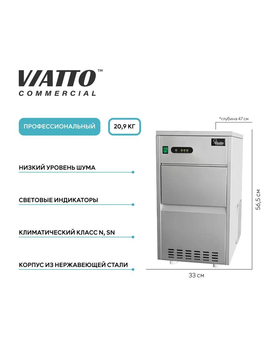 Льдогенератор VIATTO VA-IM-20 предназначен для производства пальчикового льда для охлаждения коктейлей, алкогольных и безалкогольных напитков на предприятиях общественного питания и торговли. Модель имеет воздушное охлаждение и подключается к воде. Корпус выполнен из нержавеющей стали, гарантирующей долгий срок службы.