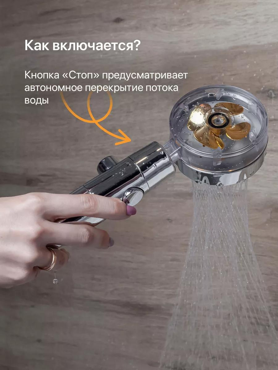Лейка класса Премиум идеальная насадка для ванной и душевой кабины. Душевая лейка с вентилятором подарит вам незабываемые ощущения как отSPA процедуры. Установленный внутри пропеллер полностью смешивает горячую и холодную воду и под высоким давлением подает ее через специальных микро отверстий. За счет этого турболейка делает напор намного сильнее и при этом снижает количество расходуемой воды в 2-3 раза, а значит водосберегающая лейка просто незаменима для экономии воды. Проходящая через рассеиватель лейки для душа струя под высоким напором обеспечивают массажный спа эффект без каких либо неприятных ощущений. Вращающаяся головка лейки поворачивается на 360˚ вокруг своей оси и позволяет выставить удобный для Вас угол направления воды. Насадка для душа имеет сборную конструкцию, что позволяет легко разобрать душ и почистить от загрязнений все части. Лейка с турбонаддувом универсальная, стандартная резьба подойдет под любой смеситель, а значит докупать шланг отдельно не нужно и Вы сможете за несколько секунд самостоятельно поменять насадку. Массажная лейка для душа отлично подойдет и для душевой системы с насадкой «тропический душ». Насадка для душа с вентилятором оснащена кнопкой СТОП на рукоятке - с помощью нее Вы сможете моментально регулировать (или приостановить) напор воды для Вашего комфорта и больше не придется тянуться к переключателю на смесителе. Лейка душевая легкая, имеет эргономичную форму и удобно лежит в руке. Лейка для душевой идет в комплекте с фильтром из ПП хлопка, который не только очищает воду от мелкого мусора, извести и бактерий, но и смягчает и дехлорирует воду, что оказывает благотворное влияние на состояние Вашей кожи. Наша турбо лейка с массажным эффектом станет отличным приобретением для вашего дома и отлично подойдет как душ для дачи.