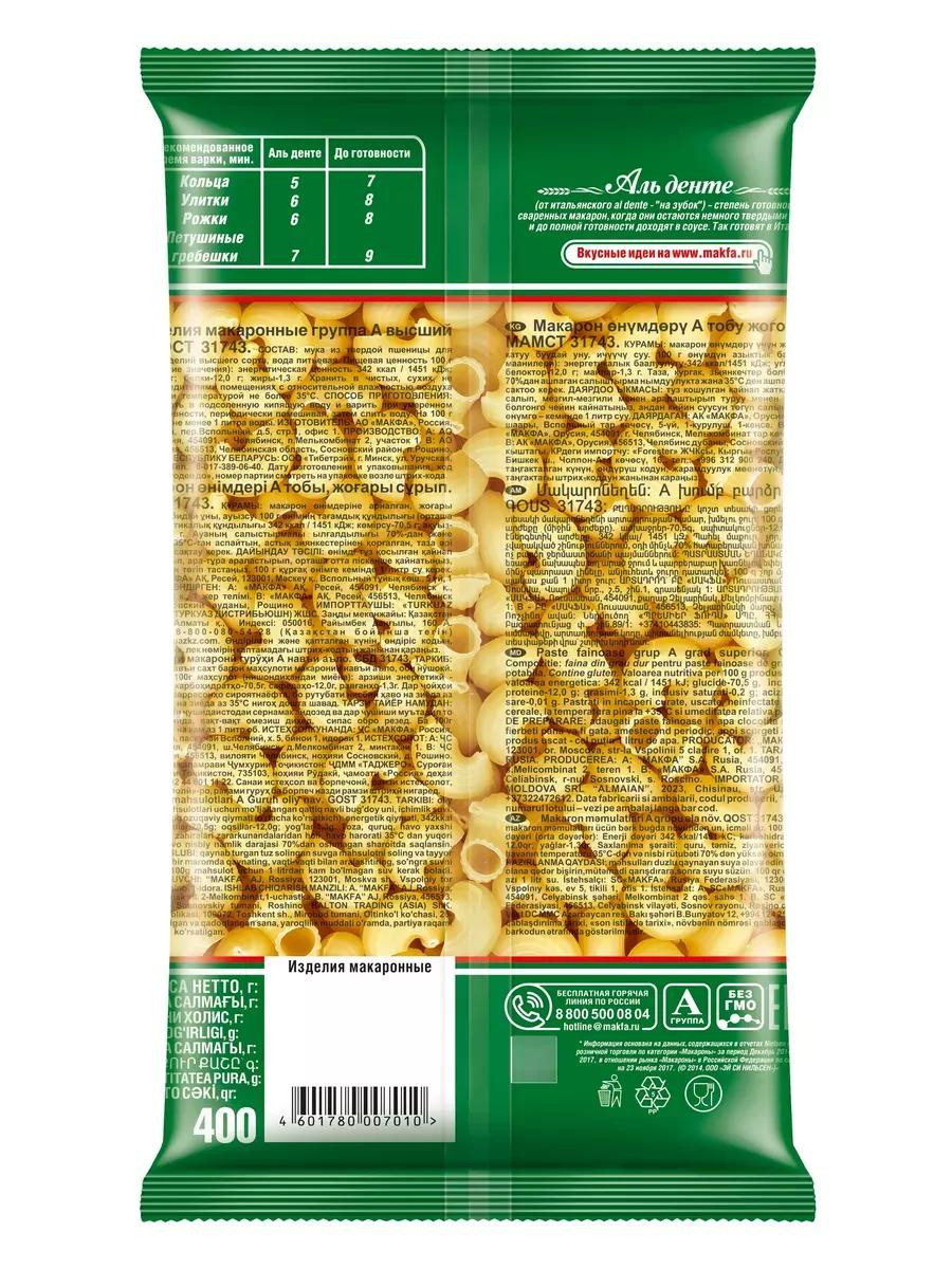 Макароны «Витки» от бренда MAKFA — идеальный выбор для супов, гарниров и запеканок. Изготовлены из твёрдой пшеницы высшего сорта, хорошо держат форму и не слипаются при варке. Отличаются натуральным вкусом и приятной текстурой.
