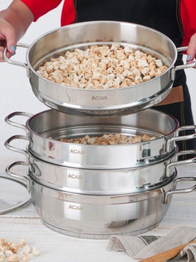 - Многофункциональность: Идеально подходит для приготовления мантов, хинкали, дамплингов, вареников на пару, а также может использоваться как обычная кастрюля большого объема.