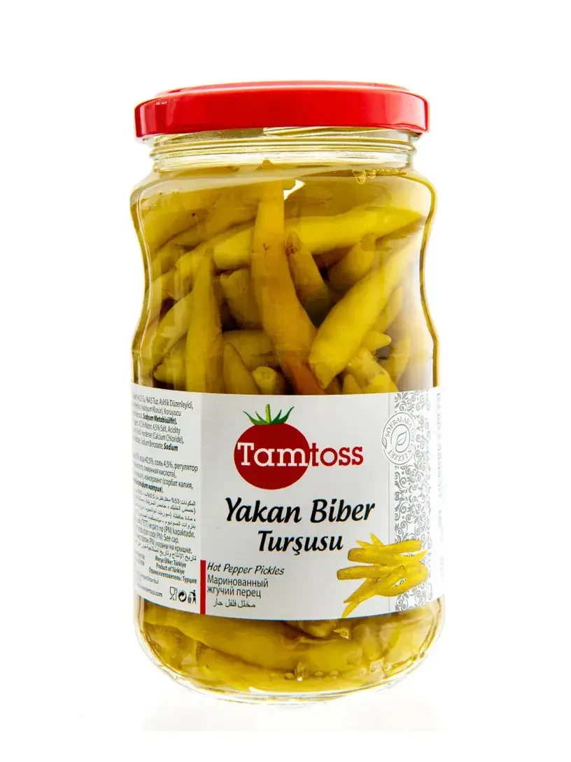 Острые маринованные перцы с насыщенным вкусом и хрустящей текстурой. Подходят как пикантная закуска, а также как дополнение к мясным и овощным блюдам. Приготовлены по традиционному рецепту с добавлением специй и уксуса.