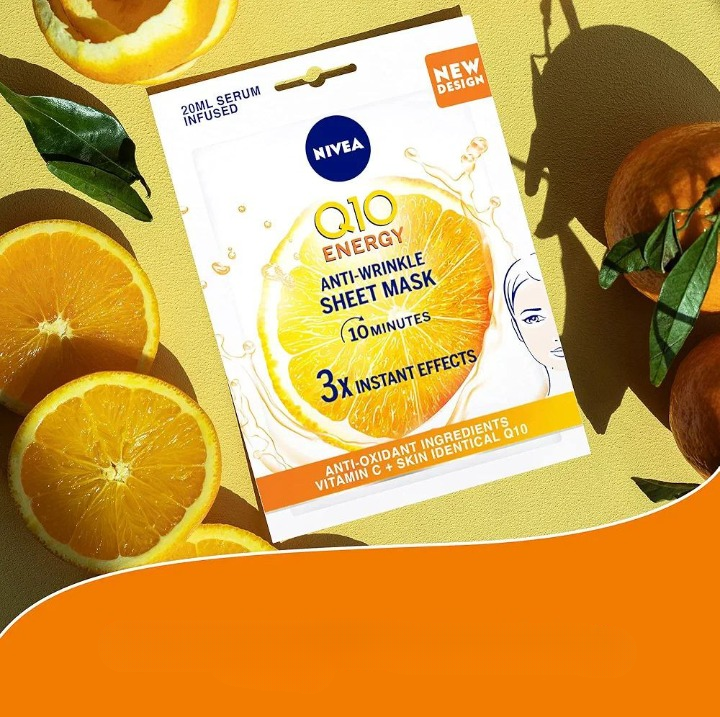 Тканевая маска для лица NIVEA Q10 Energy Anti-Wrinkle — это средство для борьбы с первыми признаками старения, которое обеспечивает мгновенный эффект. Пропитанная формулой с коэнзимом Q10, витамином C и экстрактом апельсина, маска помогает уменьшить мелкие морщины, придаёт коже свежесть и сияние. Всего за 10 минут использования кожа становится более упругой, гладкой и насыщенной энергией. Удобный формат маски с 20 мл активной сыворотки делает её идеальным выбором для экспресс-ухода. Подходит для всех типов кожи и может использоваться для восстановления после воздействия стрессовых факторов.