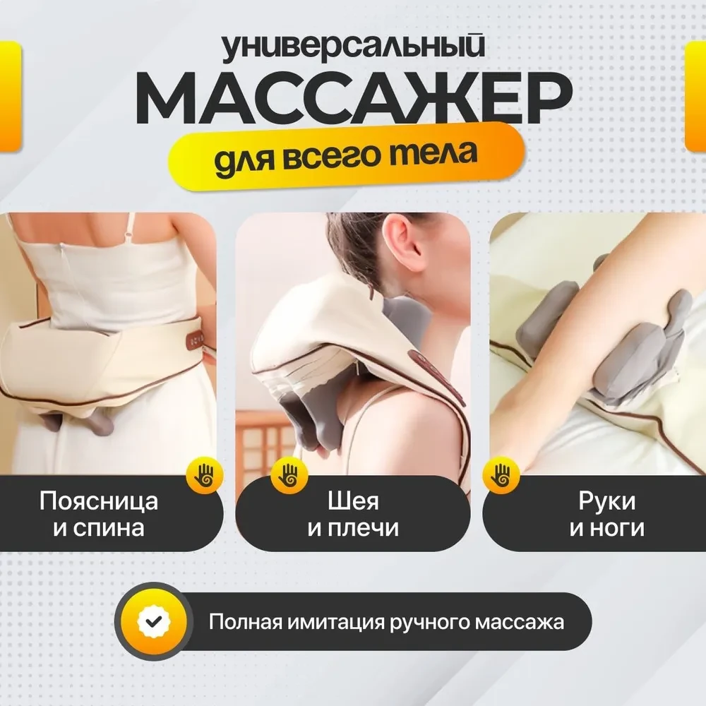 Массажер для тела, ног, шеи и плеч с роликовым механизмом и инфракрасным подогревом - идеальное решение для расслабления и снятия напряжения после долгого дня. Его удобно использовать дома или в офисе, чтобы получить нежный массаж и приятное тепло, которые помогут расслабиться и снять усталость.