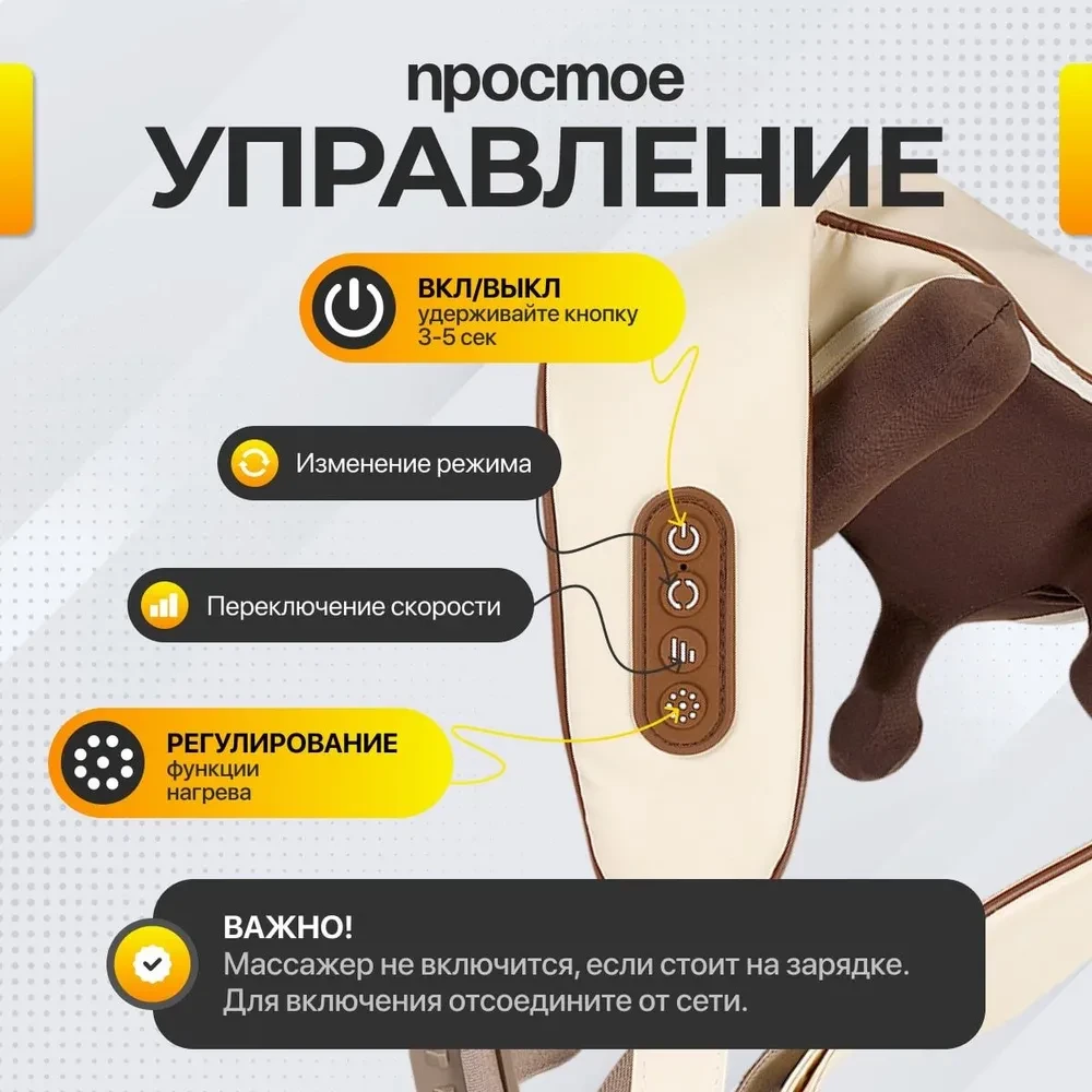 Этот массажер для шеи и плеч также является беспроводным, что делает его удобным в использовании.