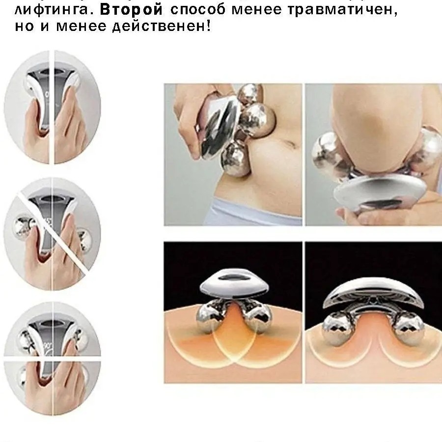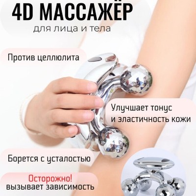 Массажер для тела 4D Roller - это инновационное устройство, которое обеспечивает качественный и эффективный разминающий массаж для всего тела. Его уникальность заключается в четырех круглых роликах с платиновым напылением, каждый из которых имеет 330 граней.