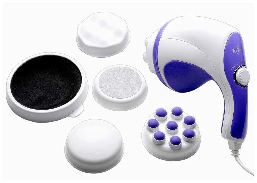 Помимо избавления от излишнего веса Релакс энд Тон позволяет значительно облегчить боль в спине и шее, а также улучшить кровообращение, параллельно освобождая вас от усталости во время глубокого массажа всего тела.Уровень интенсивности массажа регулируется, благодаря специальному регулятору. Массажер Релакс энд Тон легок, удобен и прост в использовании.Массажер Relax And Tone эффективно используется на: плечах (снимая напряжение и усталость), предплечьях (тонизируя мышцы), бёдрах (формируя мышцы брюшного пресса и ягодиц), верхней части бедра (делая Ваши ног стройнее), брюшном прессе (делая талию более стройной), икрах (расслабляя мышцы ног), ступнях (избавляя Вас от мозолей и жесткой кожи).В массажере предусмотрены четыре специальные насадки:Плоскую насадку применяют на плечах, шее и спине. Она позволяет избавиться от напряжения и усталости в мышцах.Волнистую насадку с четырьмя выступами используют для борьбы с лишним весом, а также для избавления от целлюлита и растяжек, но перед использованием в данном случае рекомендуют наносить гель для похудения.Вращающуюся насадку с восьмью шариками также применяют совместно с гелем для похудения или массажным маслом.Шлифовальную насадку используют для ног.Есть ещё и защитная насадка, которая используется вместе с плоской и рифленой насадкой.