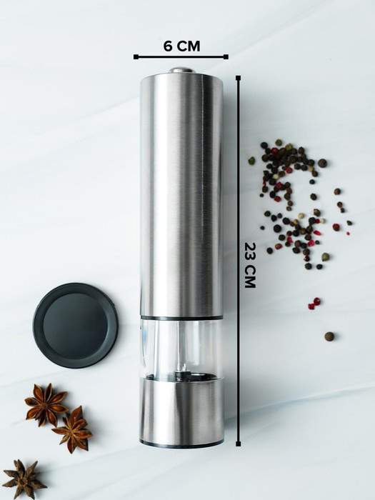 Современная электрическая мельница Magistro Steel — это удобное и стильное решение для измельчения соли, перца и других специй. Благодаря керамическим жерновам и встроенной LED-подсветке процесс становится точным и комфортным даже в условиях слабого освещения.