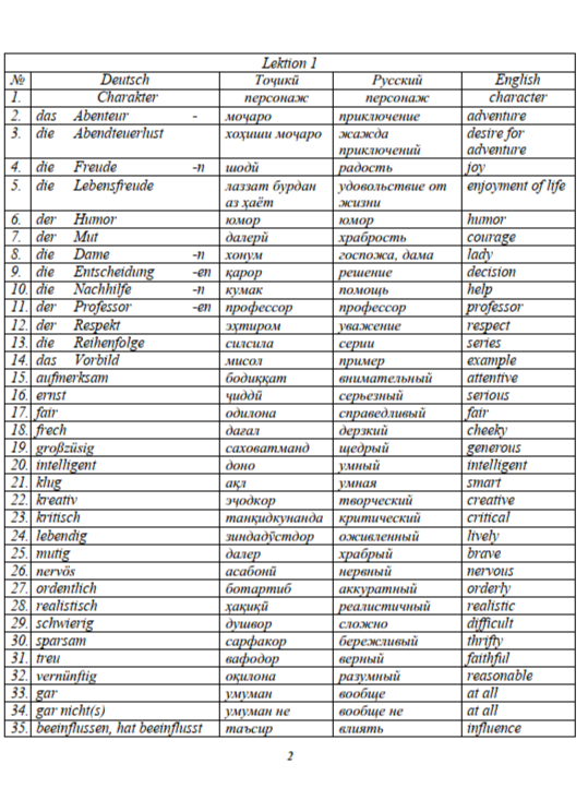 Эта книга представляет собой словарь из курса Menschen уровня B1.1. Она содержит немецкие слова с переводом на русский и таджикский языки, а также примеры их использования.