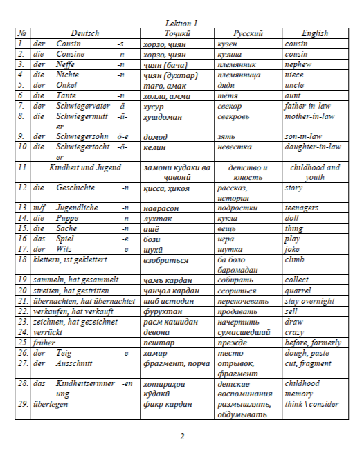 Эта книга представляет собой словарь к курсу Menschen уровня A2.1 по изучению немецкого языка как иностранного. Она содержит основные слова и выражения с переводом на таджикский, русский и английский языки.