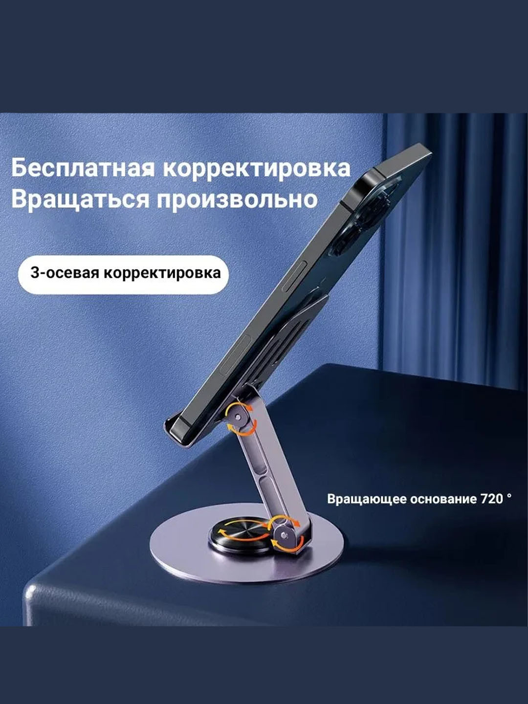 Уникальный держатель для телефона с возможностью вращения на 720° обеспечивает максимальную гибкость и удобство использования. Идеален для видеозвонков, работы, просмотра фильмов или чтения.
