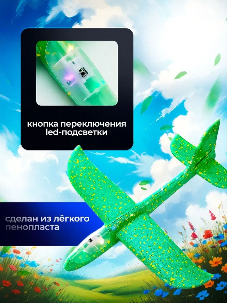 Подарите детям (и взрослым!) настоящее воздушное приключение — метательный планер из лёгкого пенопласта с яркой LED-подсветкой.