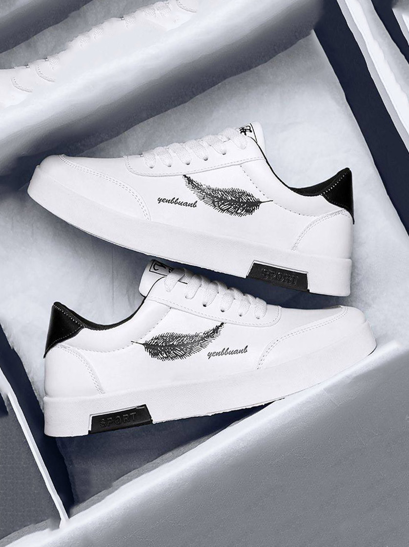 ✔ Стиль: Повседневные, спортивные ✔ Материал: Верх – искусственная кожа, подошва – резина ✔ Дизайн: Белый корпус с контрастным черным рисунком пера ✔ Особенности: