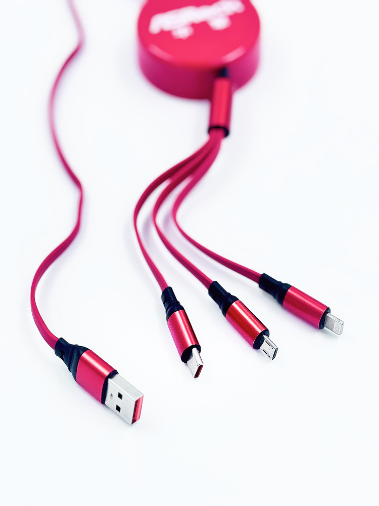 Многофункциональный USB-кабель ASRock 3-в-1, красный, выдвижной