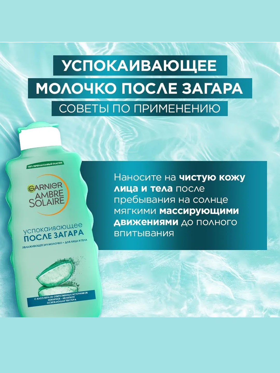 После пребывания на солнце коже необходим особенный увлажняющий и восстанавливающий уход. Средства после загара Garnier Ambre Solaire действуют как резервуар влаги для кожи, успокаивая и увлажняя ее на 24 часа. Освежающее молочко успокаивает и интенсивно увлажняет обезвоженную пребыванием на солнце кожу. Нежирная, нелипкая текстура мгновенно впитывается и придает коже нежный аромат. Уважаемые клиенты! Обращаем ваше внимание на возможные изменения в дизайне упаковки. Качественные характеристики товара остаются неизменными. Поставка осуществляется в зависимости от наличия на складе.