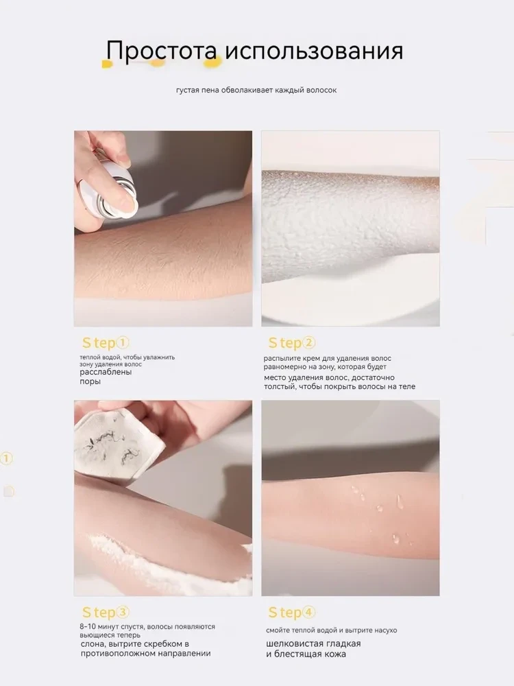 Мусс для быстрого удаления волос Нежный спрей - это отличное средство для удаления нежелательных волос на вашем теле. Этот мусс легко наносится на кожу и быстро удаляет волосы, не вызывая дискомфорта или раздражения. Он содержит уникальную формулу, которая обеспечивает нежный уход за вашей кожей, делая ее гладкой и мягкой после депиляции. Если вы ищете эффективное и качественное средство для депиляции, то Мусс для быстрого удаления волос Нежный спрей - это именно то, что вам нужно!