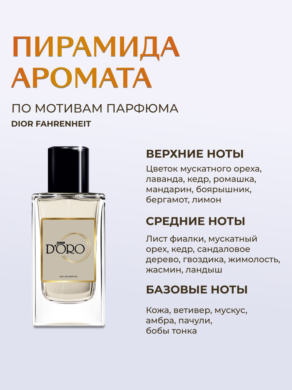"Christian Dior Fahrenheit, созданный в 1988 году, — это чувственный и страстный парфюм для мужчин, ставший иконой своей эпохи. Принадлежность к семейству цветочно-древесных ароматов с мускусными оттенками делает его уникальным и узнаваемым. Fahrenheit олицетворяет мужчину 1980-х годов — сильного, уверенного и готового показать всю глубину своих чувств.