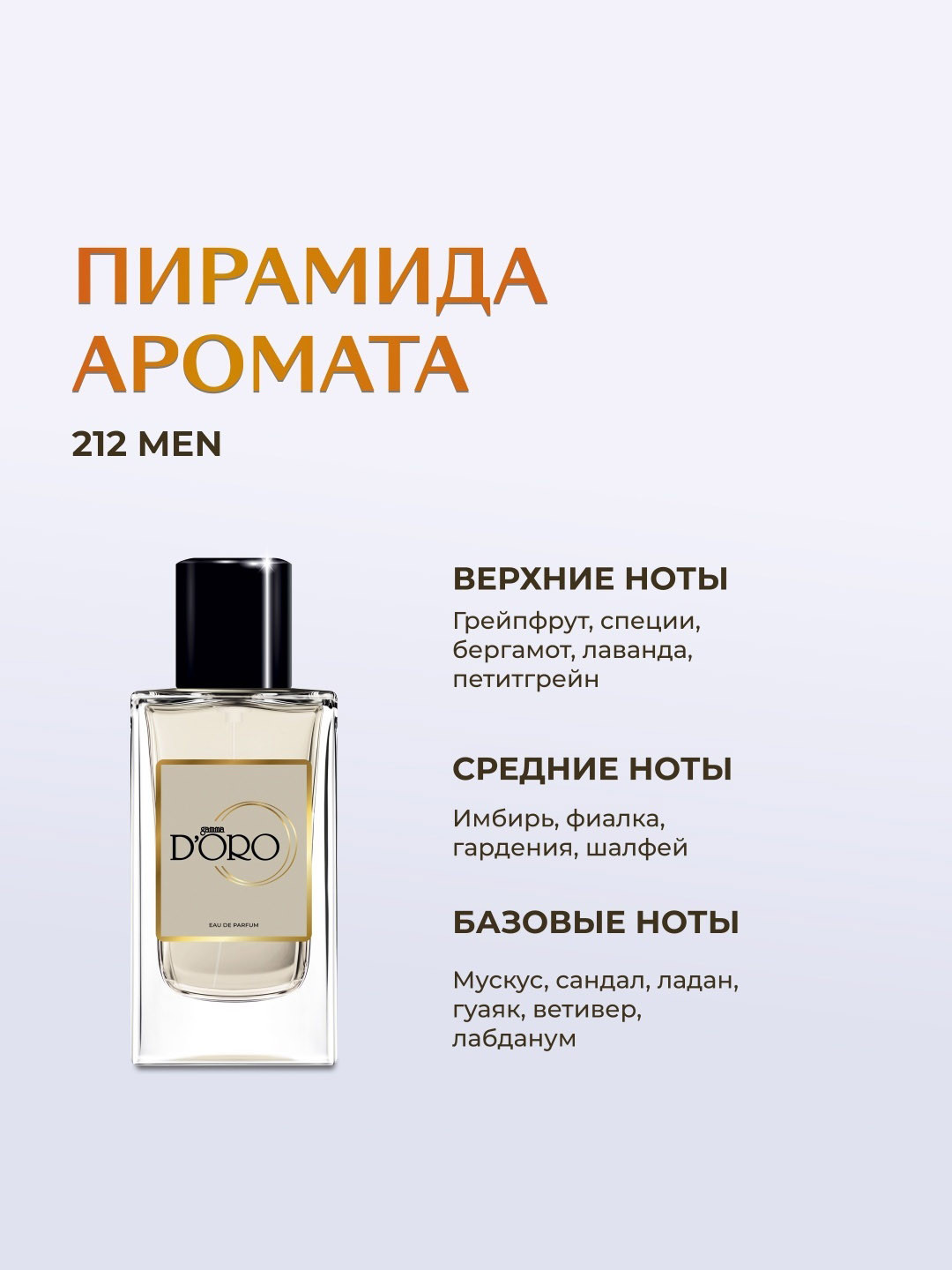 Gamma D'ORO Men – это современный и динамичный мужской аромат, вдохновленный Carolina Herrera 212 Men. Освежающие цитрусовые ноты сочетаются с пряными и древесными аккордами, создавая энергичный и элегантный аромат, который идеально подходит для уверенных в себе мужчин.