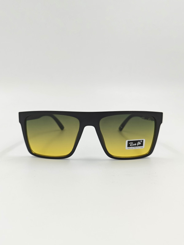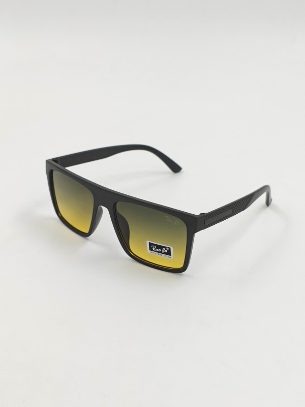 Модель выполнена в прочной прямоугольной оправе из лёгкого пластика, которая не сдавливает виски и надёжно сидит на лице даже при длительном использовании. Линзы обеспечивают 100% защиту от ультрафиолетового излучения, а их градиентный жёлтый оттенок придаёт изображению мягкость и естественность.