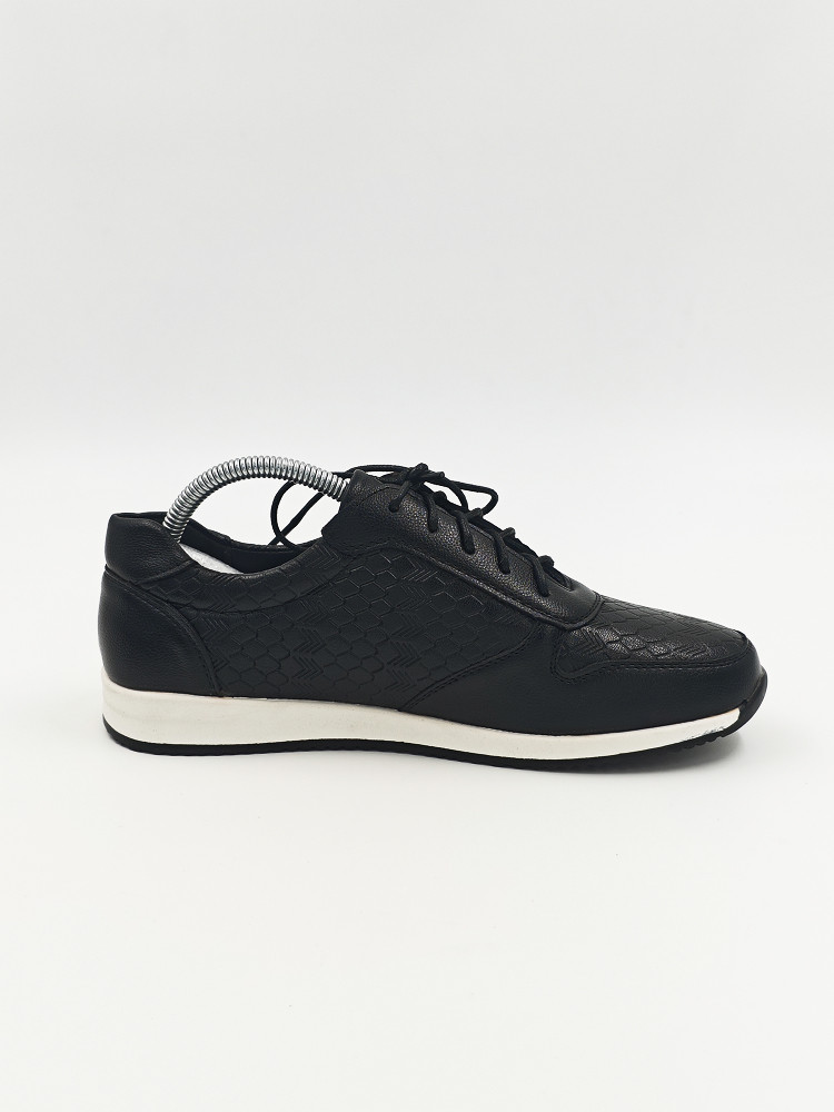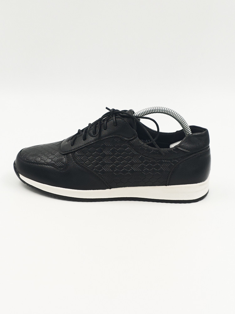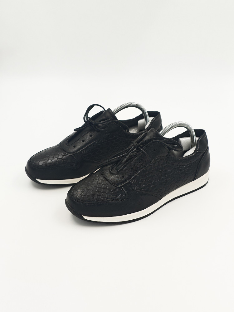 Эти стильные и удобные черные кожаные кроссовки идеально подходят для активного повседневного ношения. Прочные материалы, стильный дизайн с текстурой "под змеиную кожу" и комфортная подошва делают их отличным выбором как для занятий спортом, так и для повседневной носки.