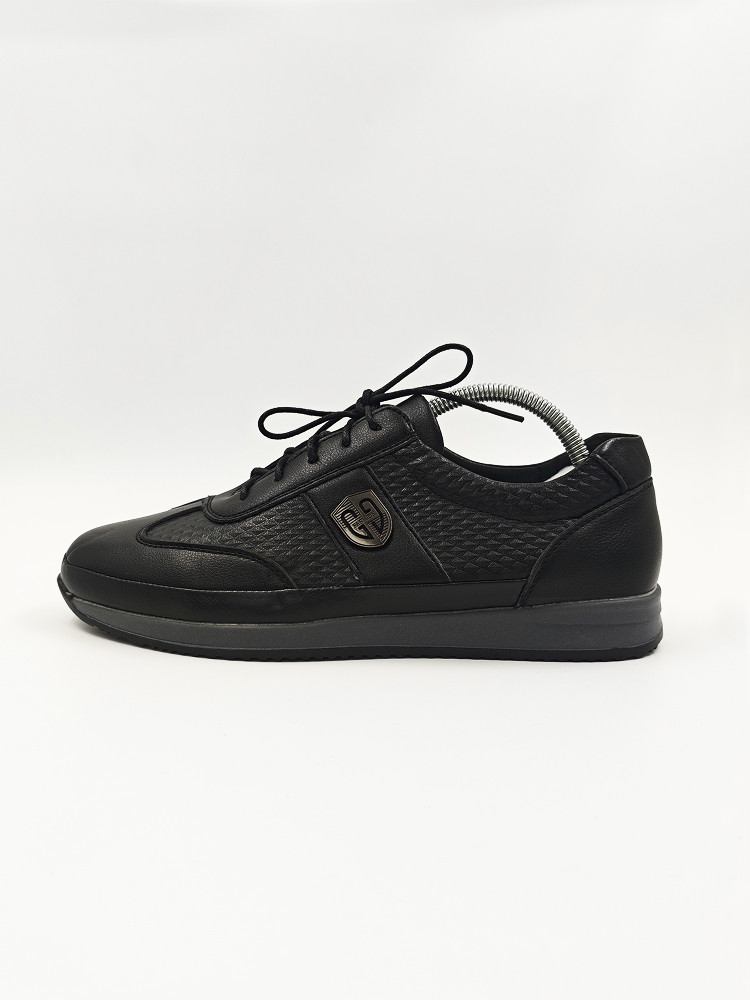 Эти мужские кроссовки с кожаным верхом и текстурой под змеиную кожу — отличное сочетание стиля и комфорта. Они идеально подойдут для повседневного ношения, прогулок и активного отдыха. Легкая подошва и уникальный дизайн с металлическими элементами обеспечат удобство и устойчивость, а качественные материалы гарантируют долговечность.