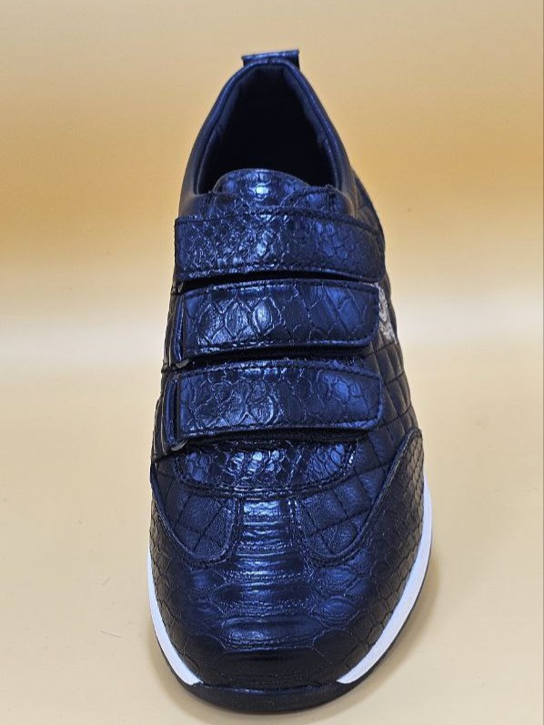 Современные мужские кроссовки с удобной велкро застежкой и элегантным тиснением под кожу крокодила. Идеальны для тех, кто ценит комфорт и стиль. Легкость в использовании и отличная посадка — идеальный выбор для повседневной носки.