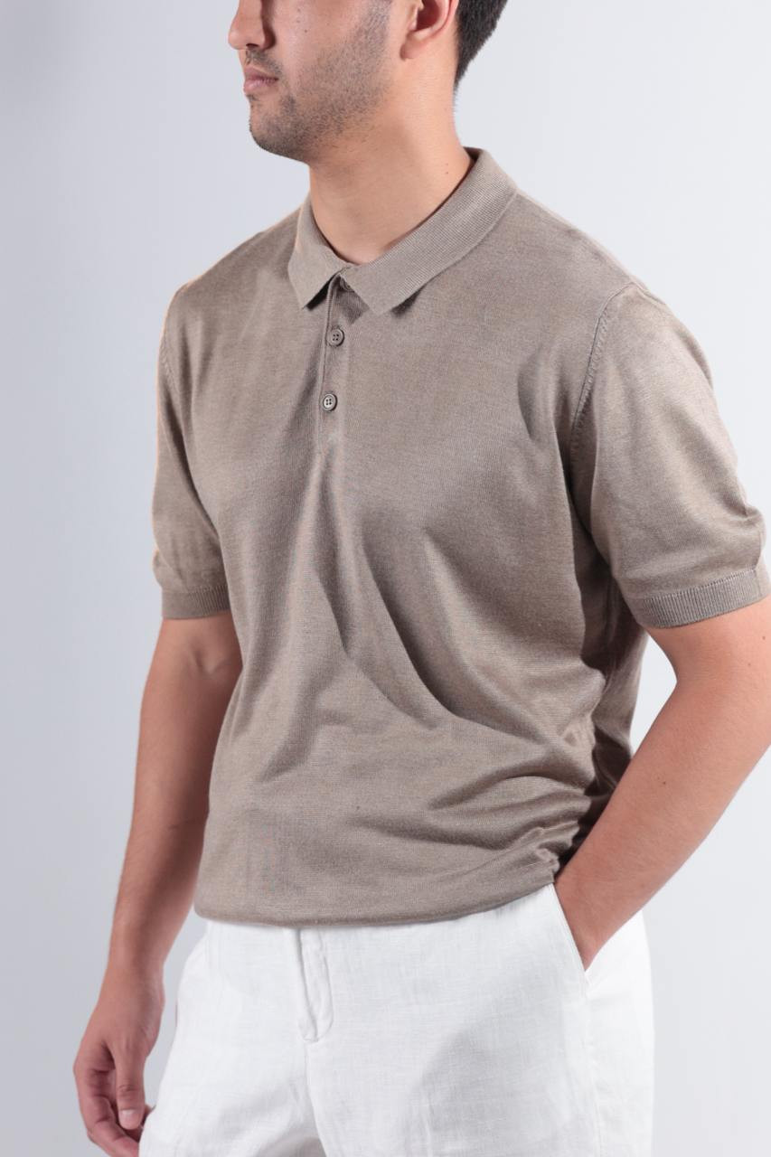 Модель выполнена из мягкого, приятного к телу трикотажа (смесь вискозы и акрила), обеспечивает комфорт даже в жаркие дни. Аккуратный отложной воротник и классическая планка на пуговицах подчёркивают элегантность без лишней строгости.