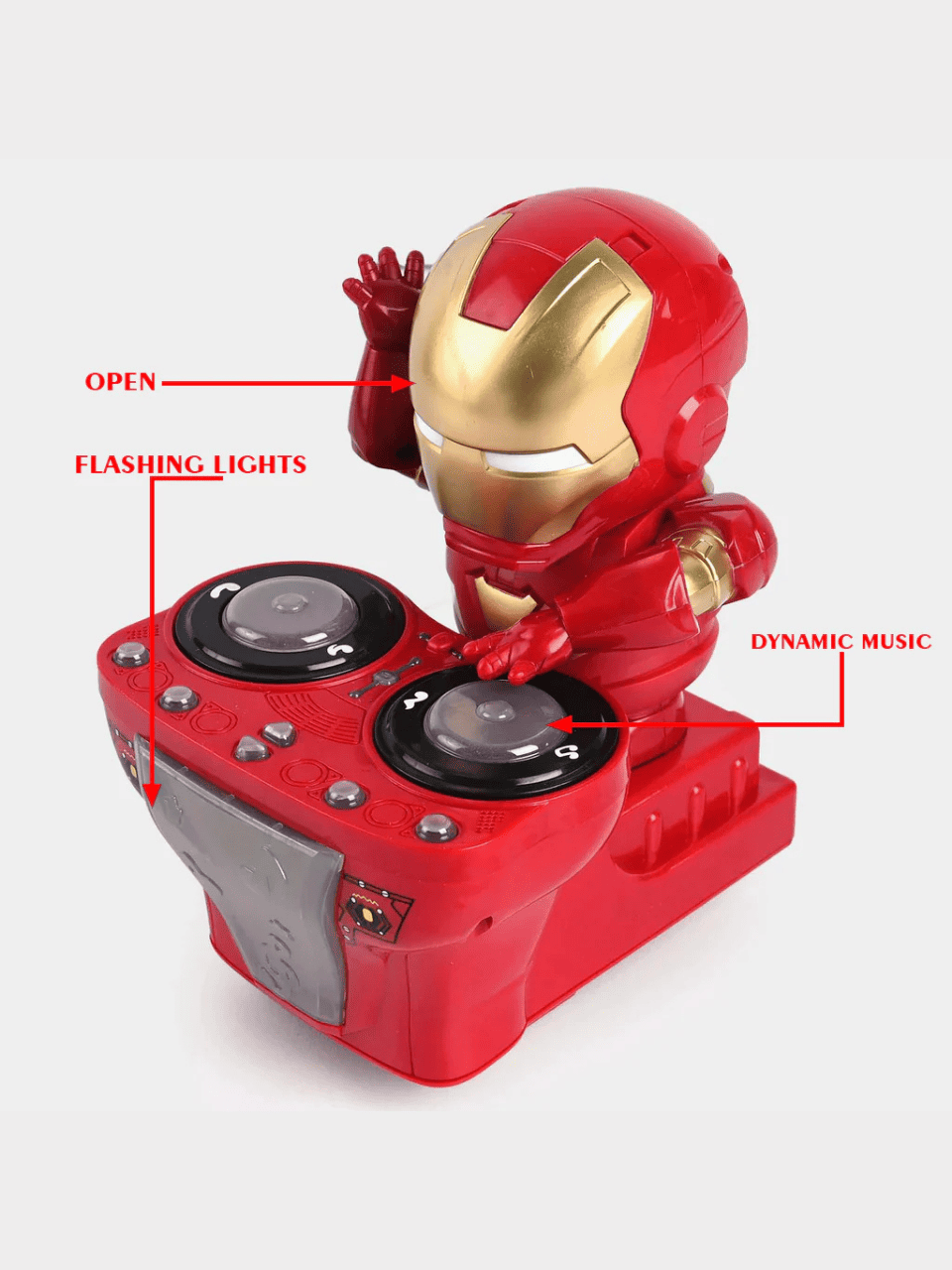 ? Игра на дисках – Руки робота двигаются взад-вперёд, словно он настоящий диджей за пультом.