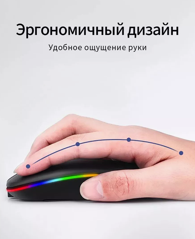 Herler Electronics представляет ультратонкую беспроводную мышь — стильный, бесшумный и технологичный гаджет с встроенной RGB-подсветкой и аккумулятором, которая одинаково хорошо подойдёт для работы, игр и повседневного использования. Мышка с оптическим модулем обеспечивает плавную и точную работу, а её эргономичная форма делает использование максимально комфортным. Благодаря бесшумным клавишам, она не отвлекает и идеально вписывается в атмосферу дома или офиса, не беспокоя окружающих звуками — особенно это оценят правши и левши. Работает устройство через Bluetooth или USB-адаптер, поддерживающий Wi-Fi (вайфай) — это позволяет подключаться даже к тем устройствам, где отсутствует стандартный порт. Мышь совместима с компьютерами, ноутбуками, планшетами и некоторыми телефонами, поддерживающими Windows, Android, macOS (mac, макбук) — подойдёт буквально для любого современного устройства. DPI-регулировка (800/1200/1600) позволит выбрать оптимальный уровень чувствительности, в зависимости от задач: будь то работа с документами, интернет-сёрфинг или динамичная игра. Встроенный аккумулятор позволяет мышке работать до 168 часов без подзарядки, а заряжается она от ноутбука, повербанка или адаптера через комплектный кабель. RGB-подсветка светится разными цветами, делая мышь не только функциональной, но и визуально привлекательной. Её лаконичный и минималистичный дизайн без лишних рисунков отлично сочетается с любой клавиатурой, монитором или ковриком. Это — универсальный аксессуар, который станет отличным подарком как для геймеров, так и для тех, кто часто работает за ПК и ценит удобную компьютерную периферию высокого качества.